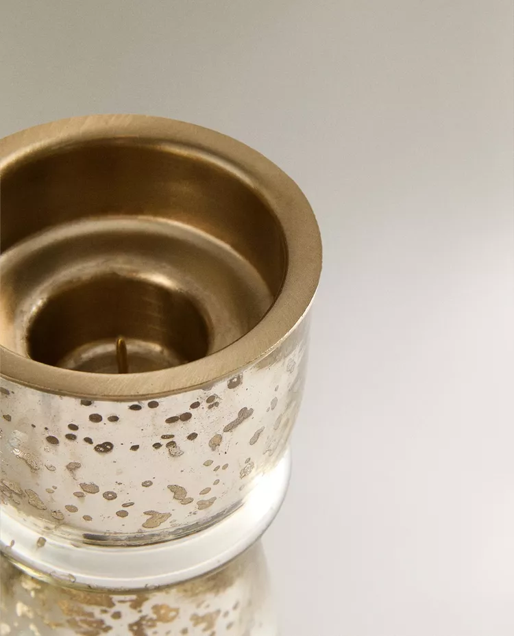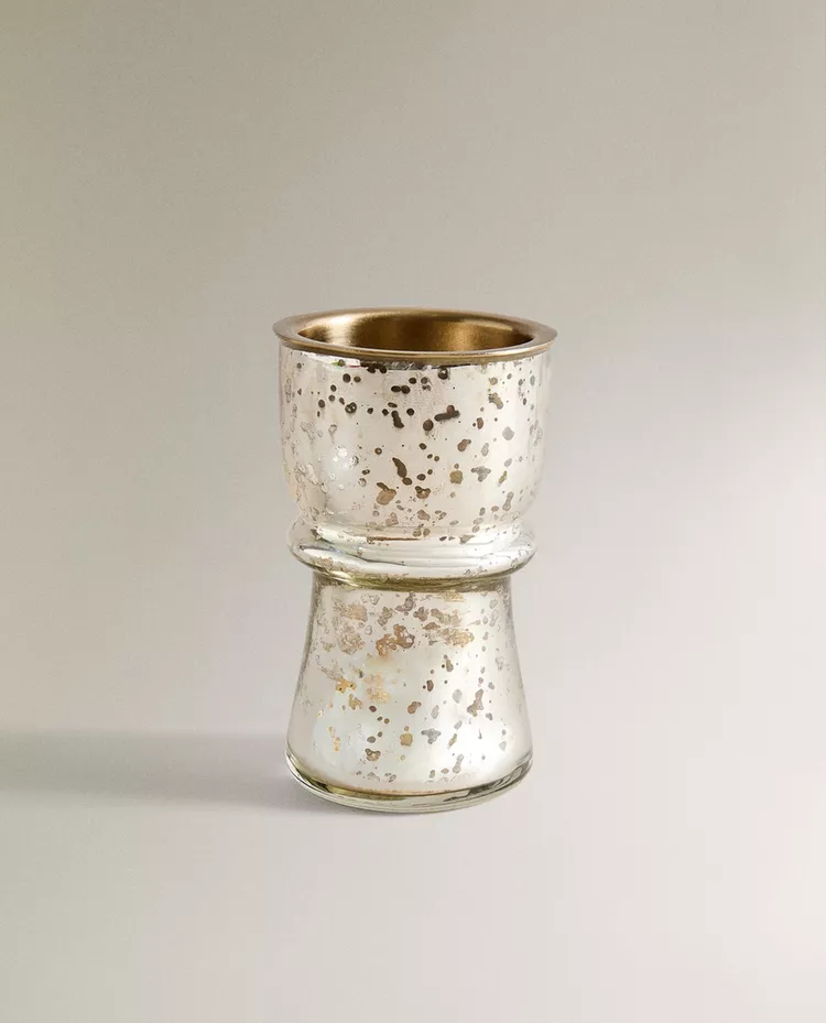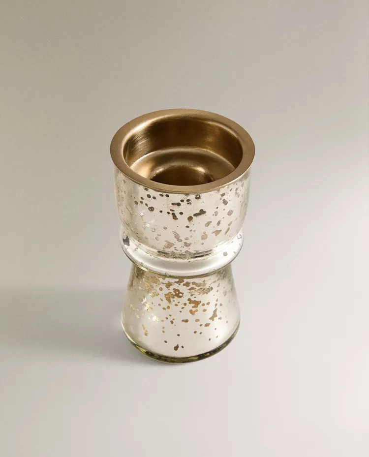 Стеклянный рождественский подсвечник для чайных свечей с металлическим покрытием. Для свечей диаметром 2,2 см.