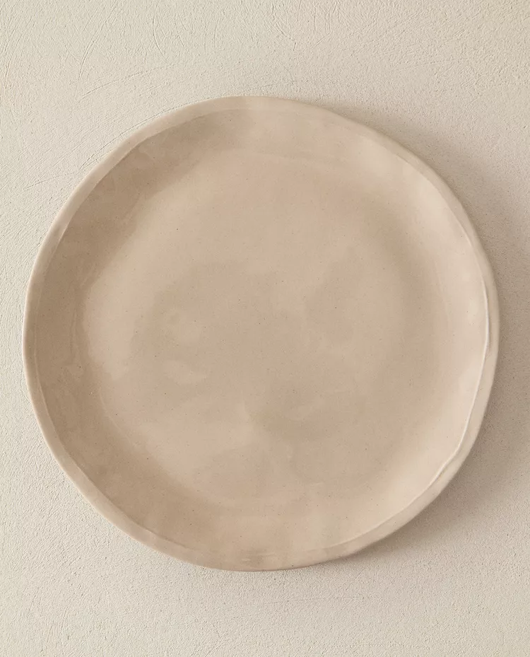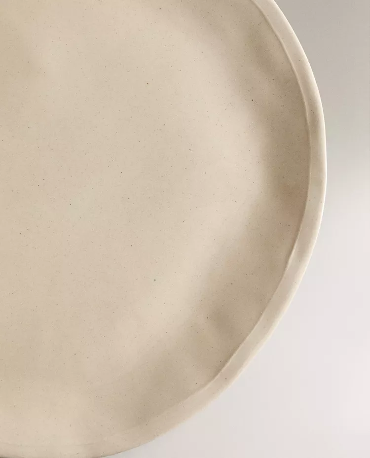 Столовая тарелка из каменной керамики с неровным простым узором.