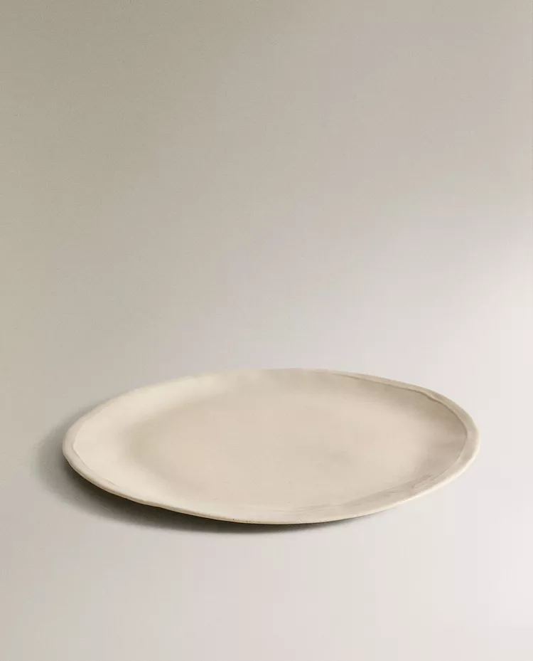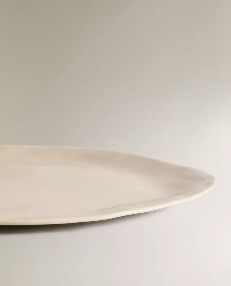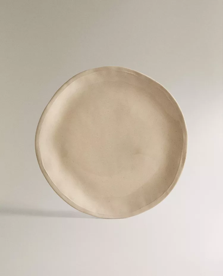 Столовая тарелка из каменной керамики с неровным простым узором.