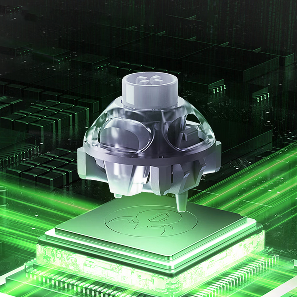 Уникальная "кольцевая конструкция с двойной орбитой 360°" переключателей. Начальное давление составляет 40 ± 10gf, а общий ход — 3,5 ± 0,2 мм, что характеризует тип устройства раннего срабатывания.