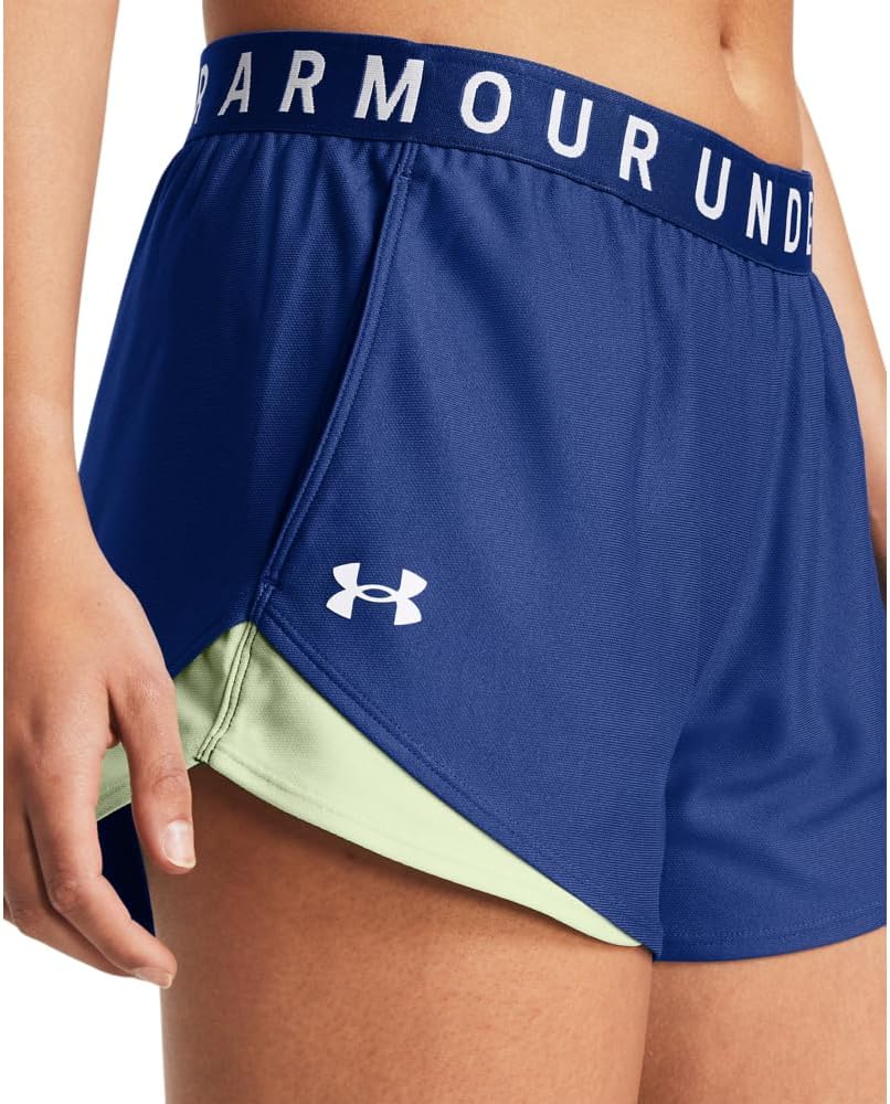 Under Armour Women's Play Up 3.0 шорты, (432) Tech Blue/Retro Green/White 3 156₽