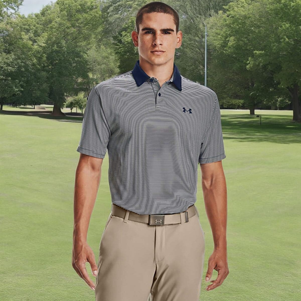 Under Armour мужская поло для гольфа Performance Stripe, Academy Blue (408)/Academy Blue