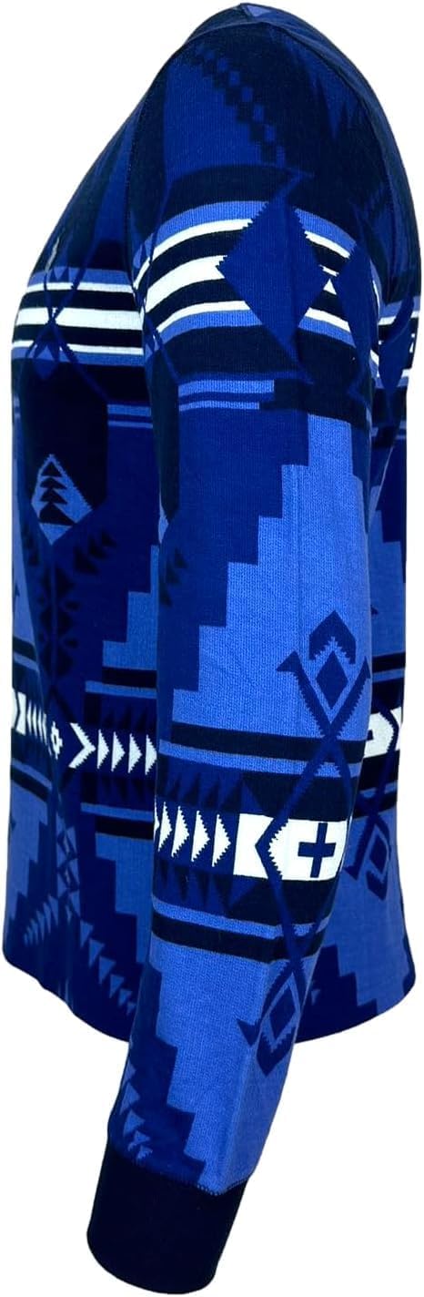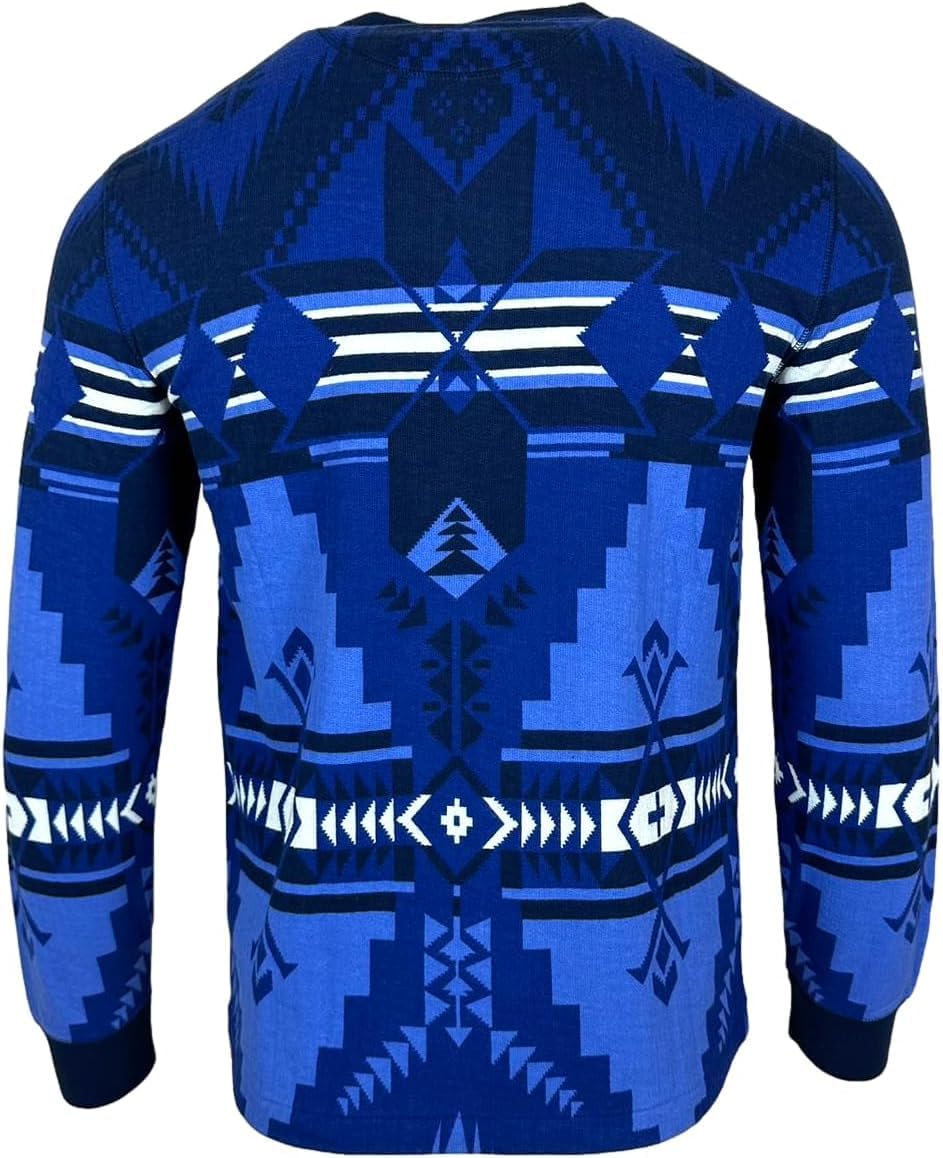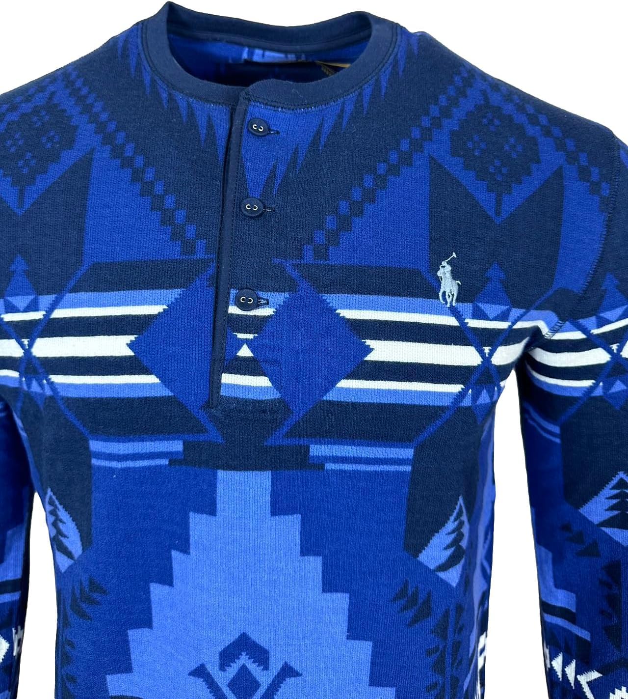 POLO RALPH LAUREN Mens Southwestern Long Sleeve Mesh Henley Pullover, Aztec Geo Blue