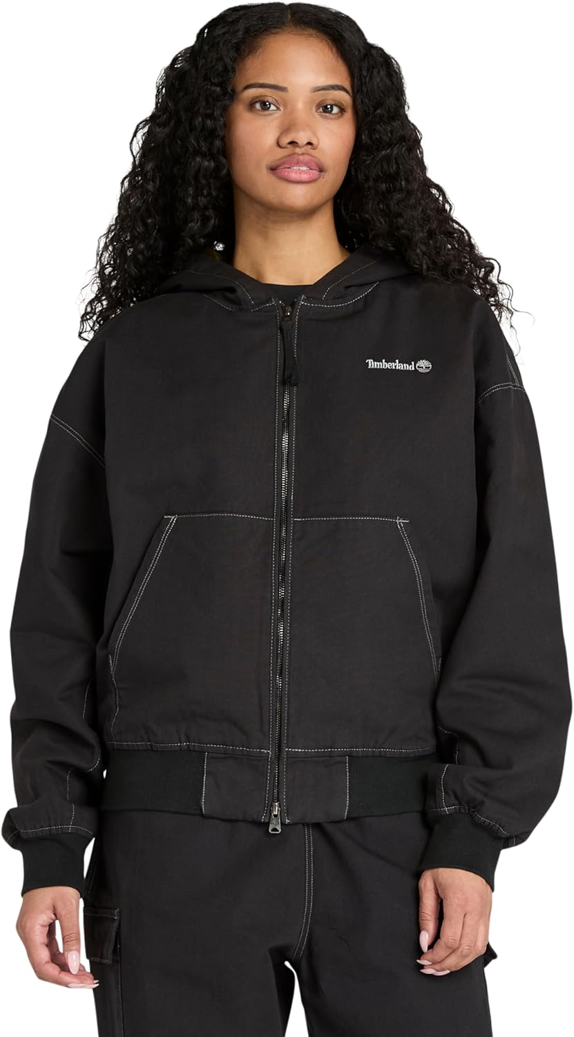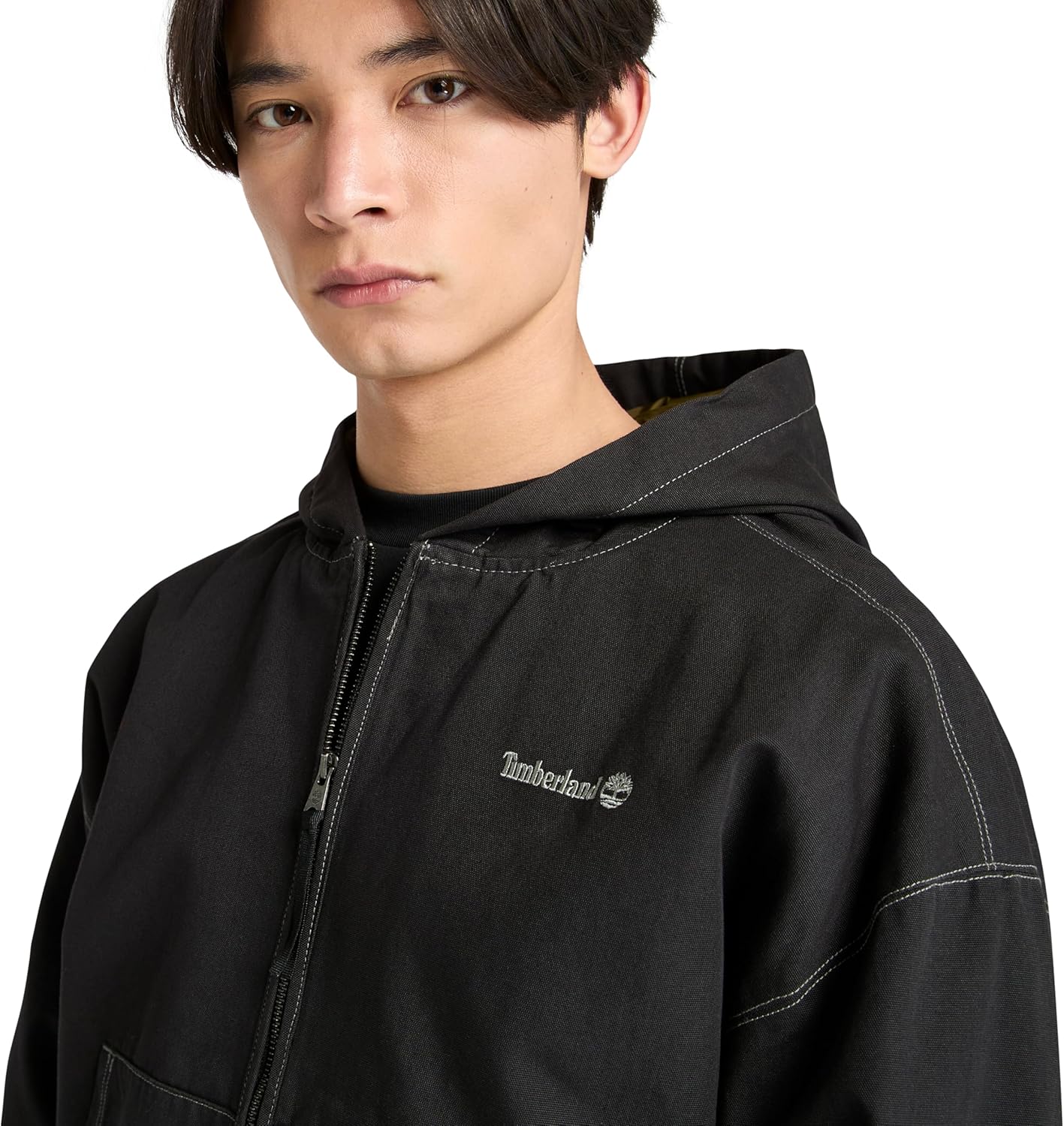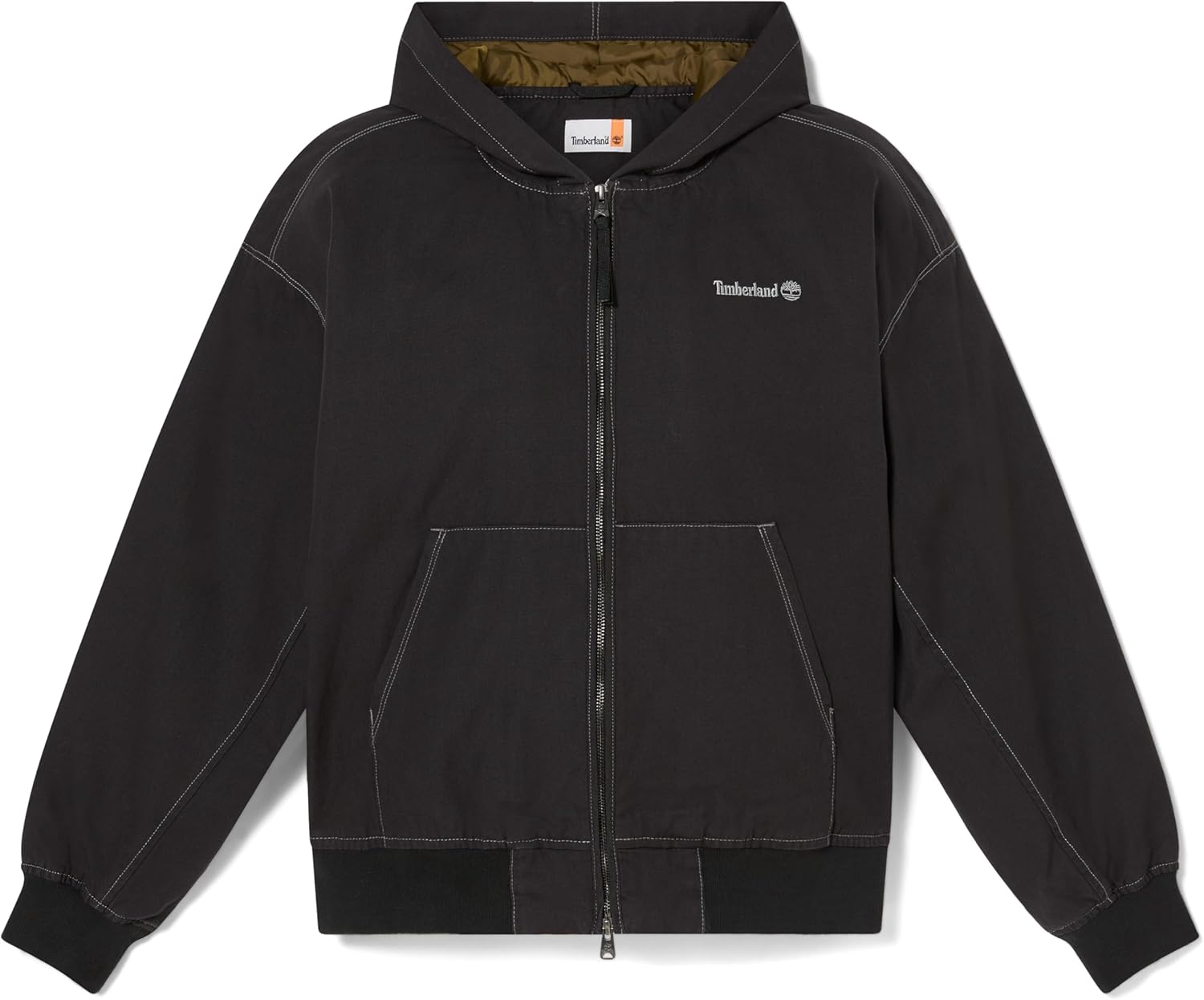 Timberland мужская куртка-бомбер с капюшоном из потертого дака, Black