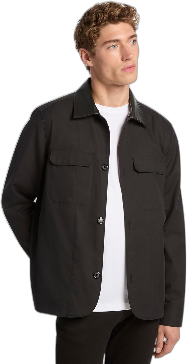 Michael Kors мужская кожаная рубашка-пиджак из твила, Black