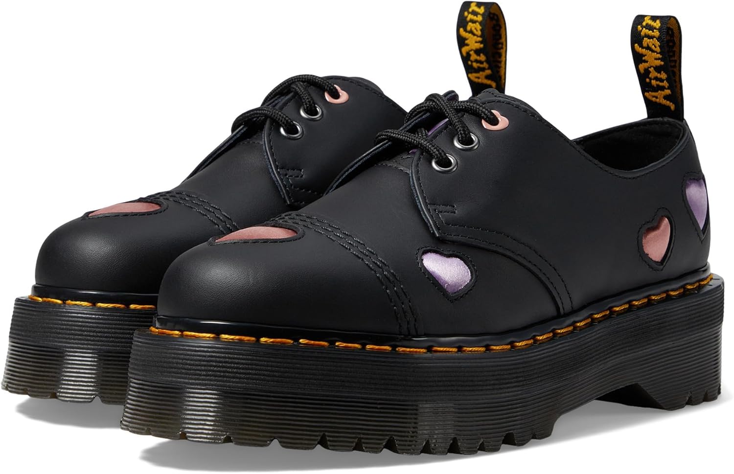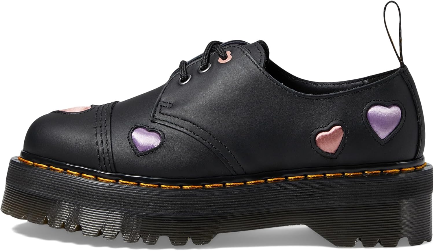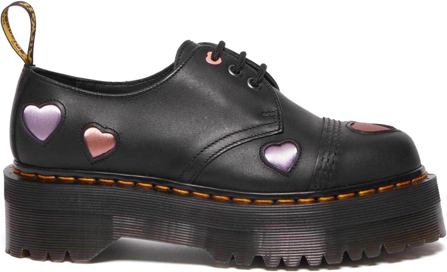 Dr. Martens Women's 1461 Quad Heart Leather Platform Shoe, Black