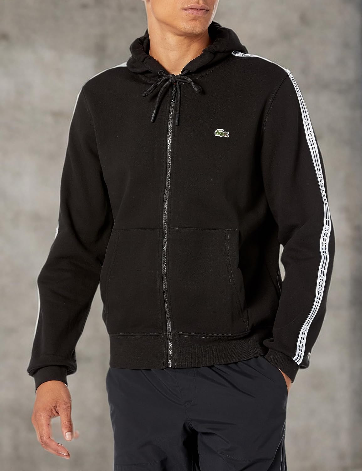 Толстовка Lacoste мужская с капюшоном на молнии и таппингом, Black