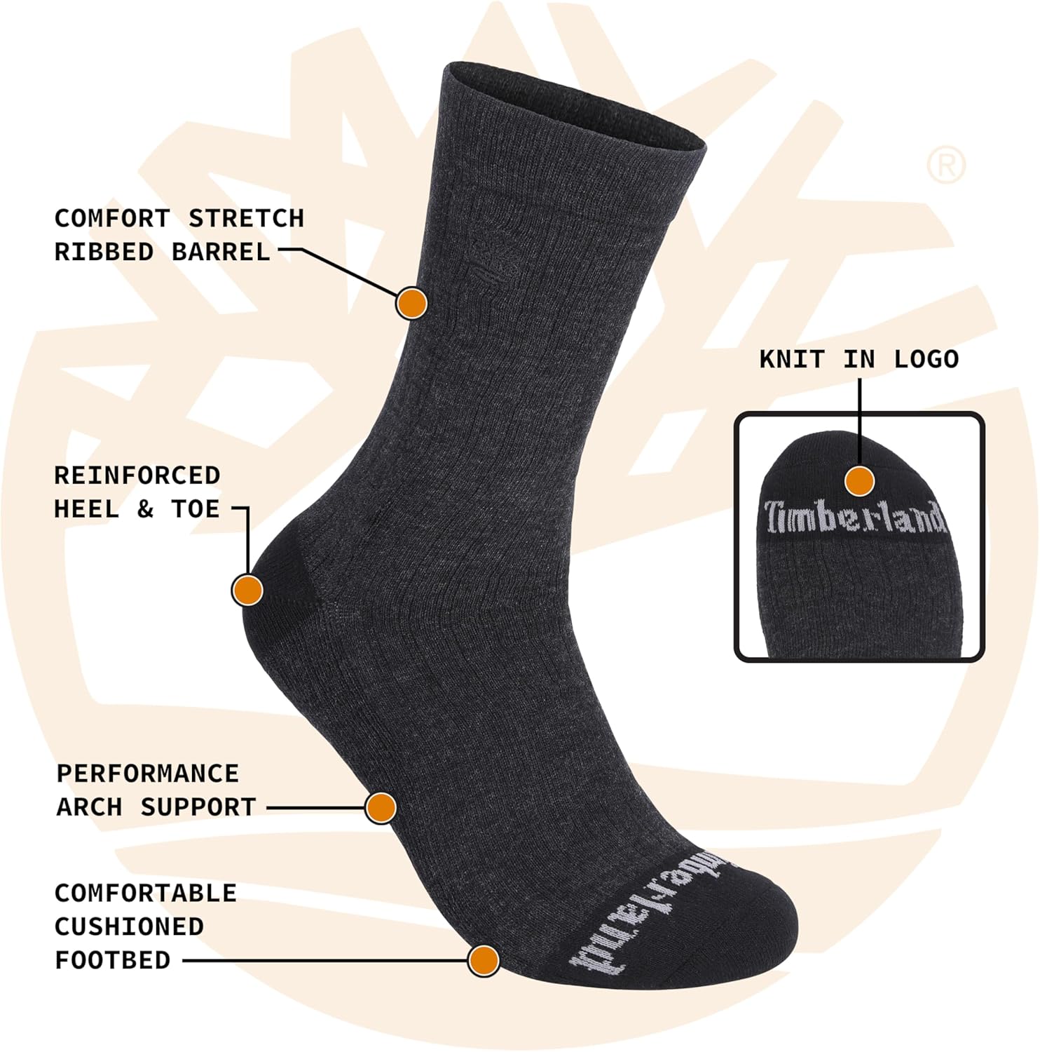 Timberland мужские носки Crew, Black (Multi)