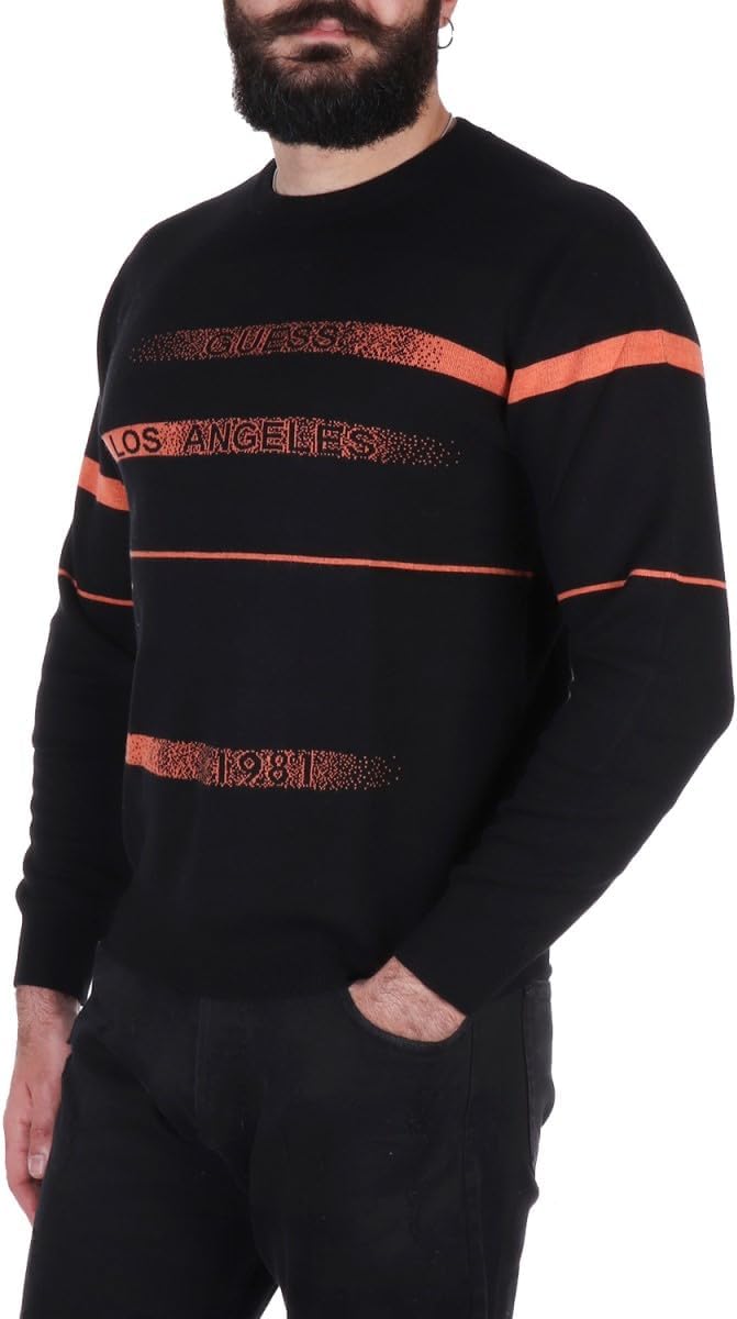 GUESS Мужской свитер Philbert Logo Striped, Black And Mars Logo Stripes