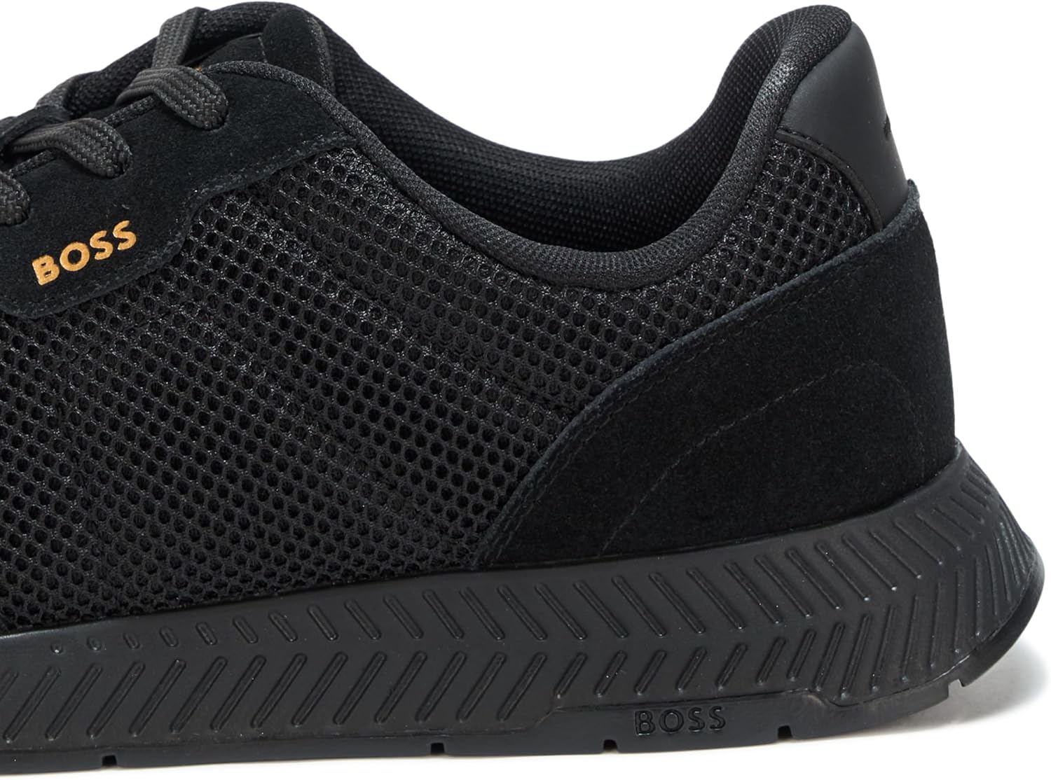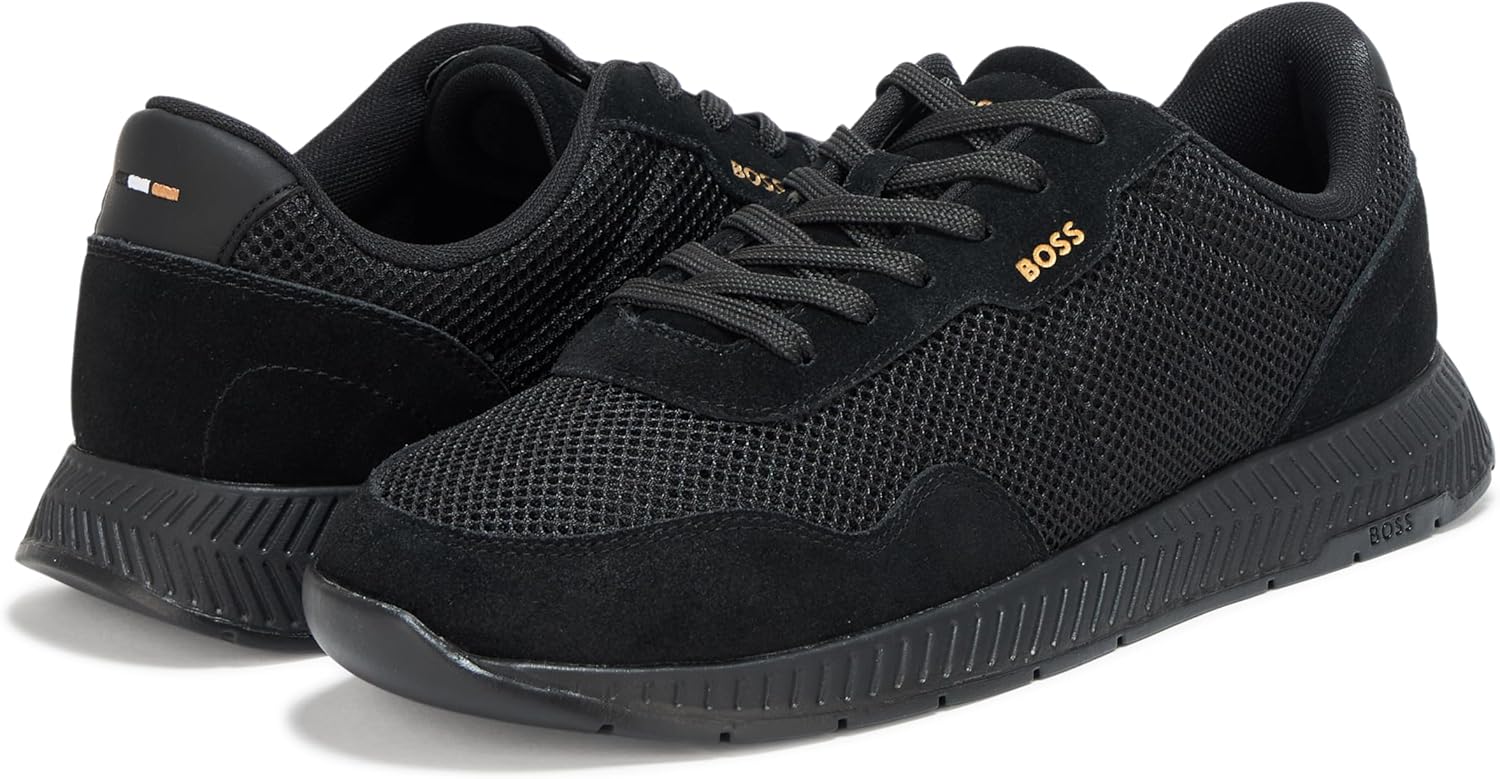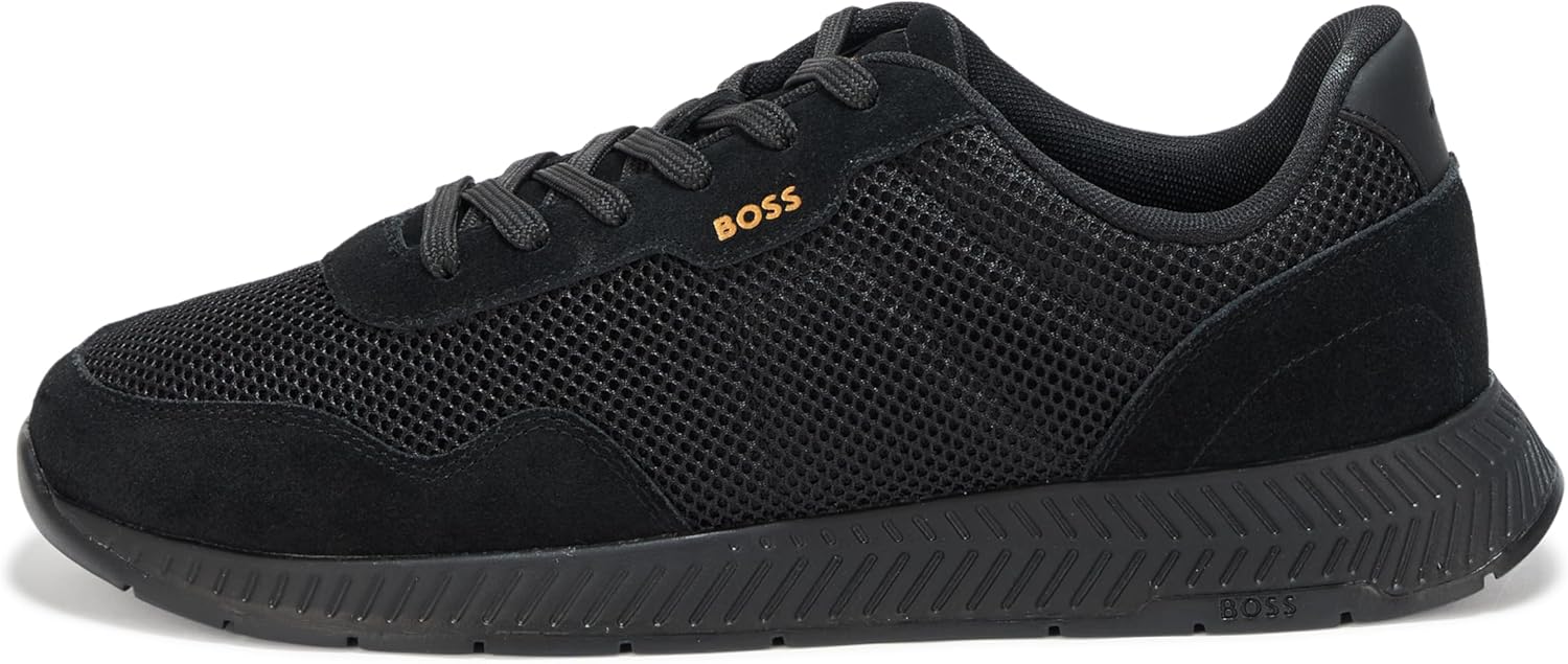 BOSS Мужские кожаные кроссовки low top, Black Carbon