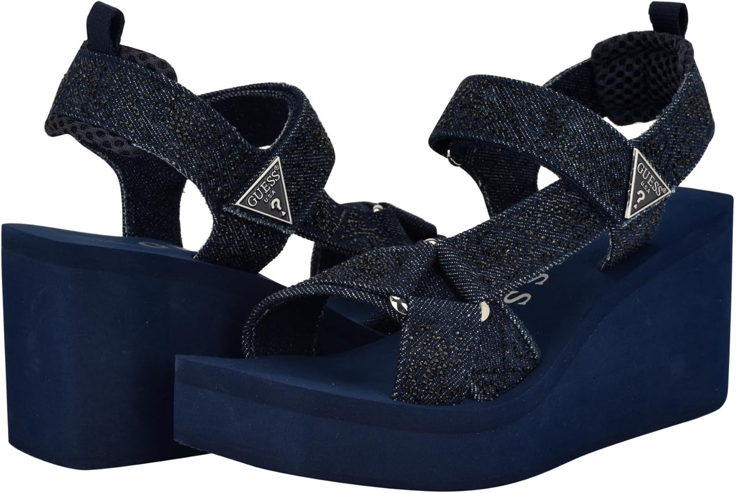 GUESS Women's DAWSIN сандалии, Black Denim Rhinestone Logo 400