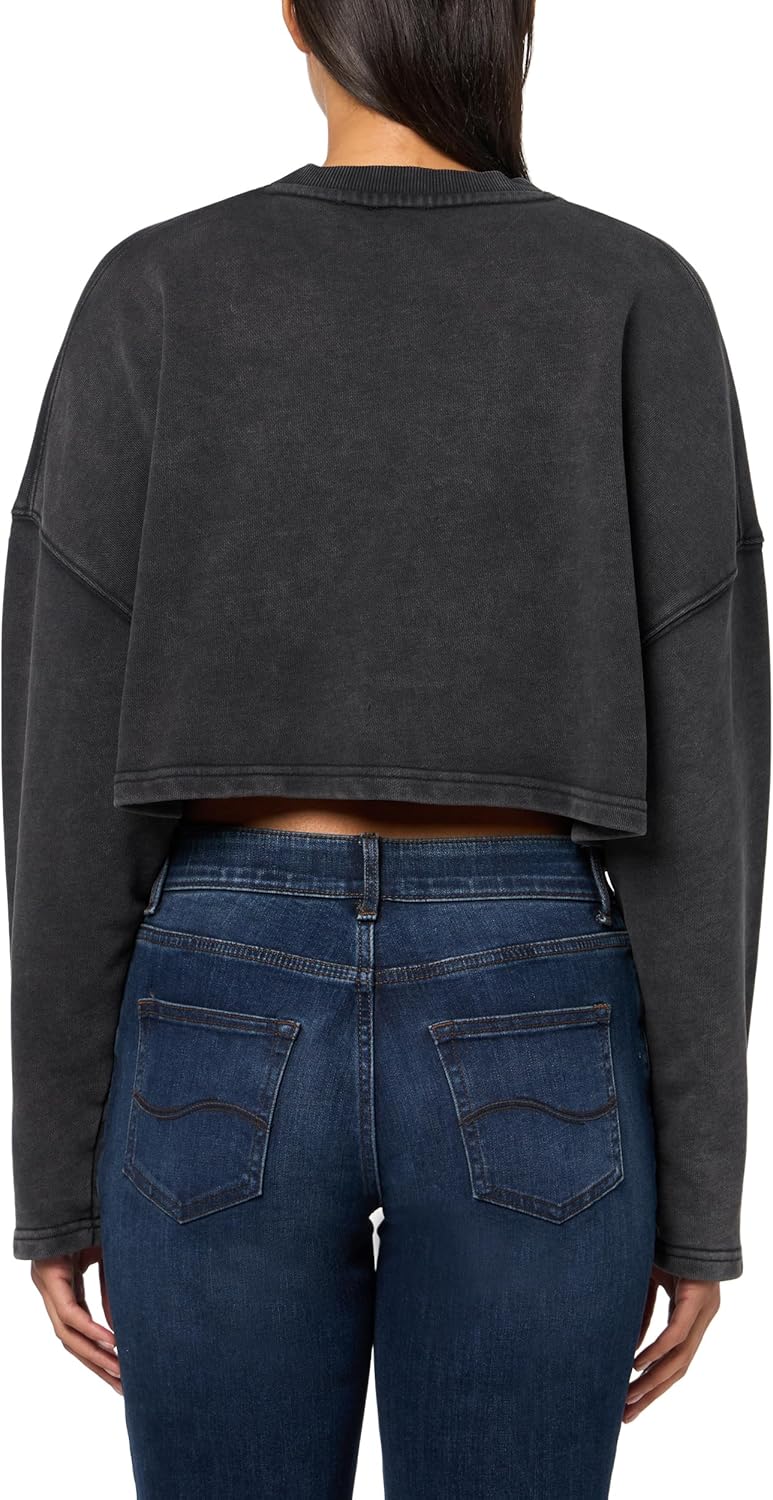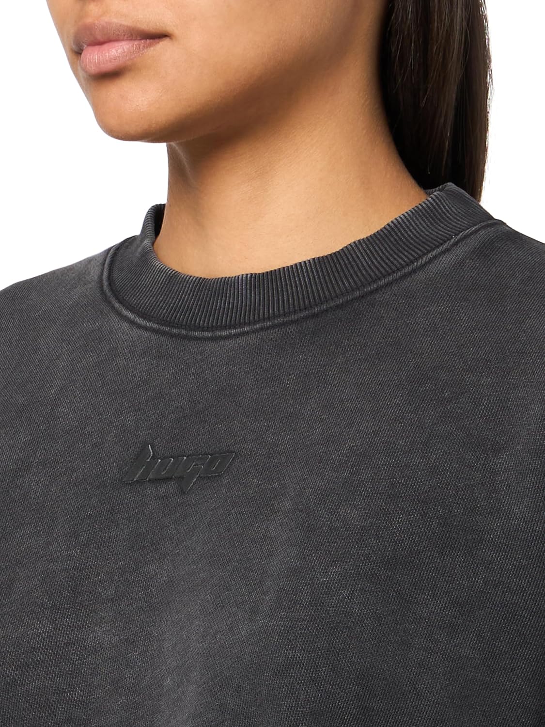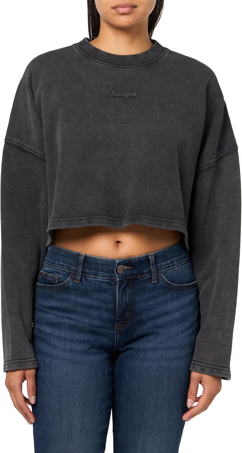 Женский укороченный худи HUGO с ретро-логотипом, Black Gloss