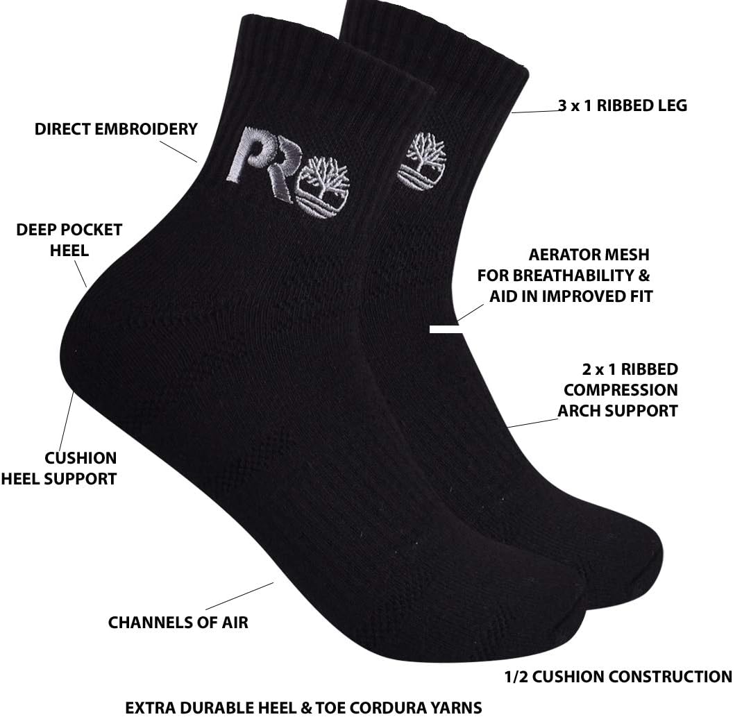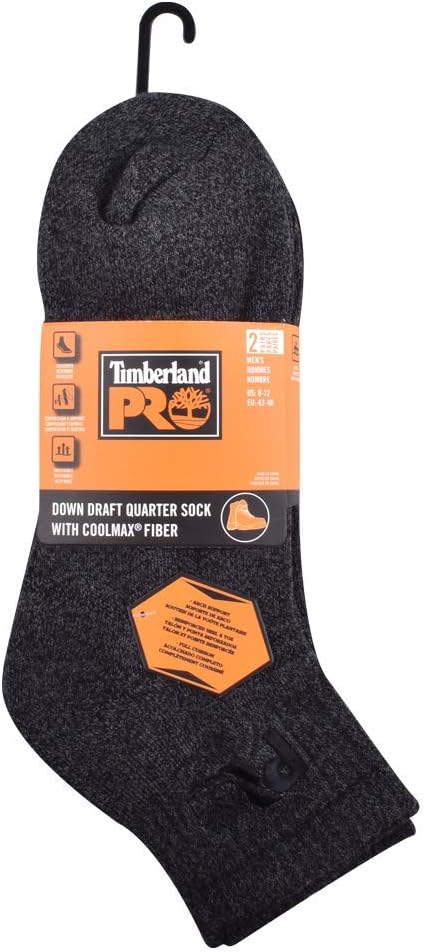 Timberland PRO мужские носки 2 пары Down Draft Quarter Ankle, Black Heather