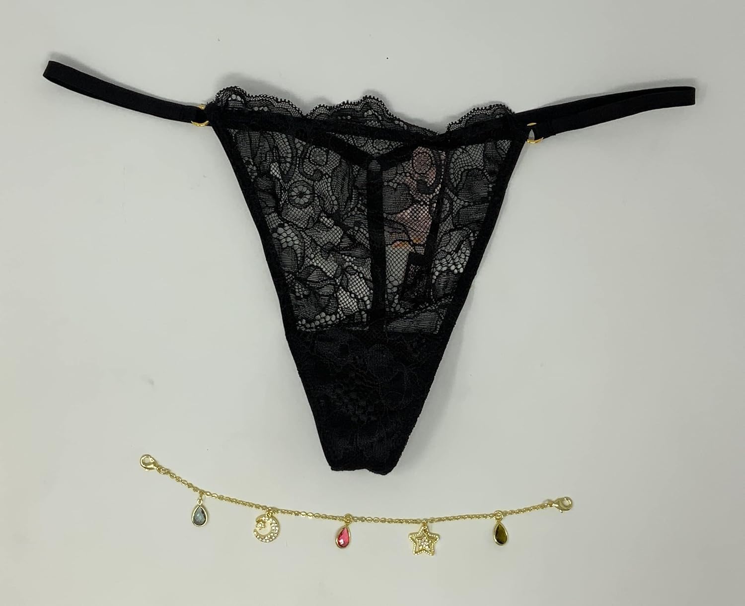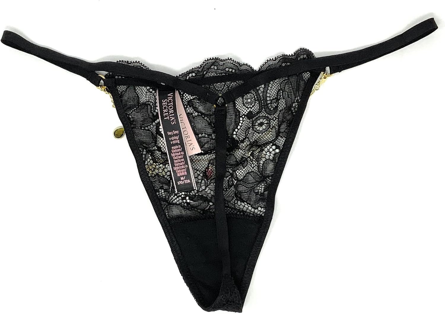 Трусики-стринги Victoria's Secret Bombshell Shine, Black Lace Gold Charms V-String