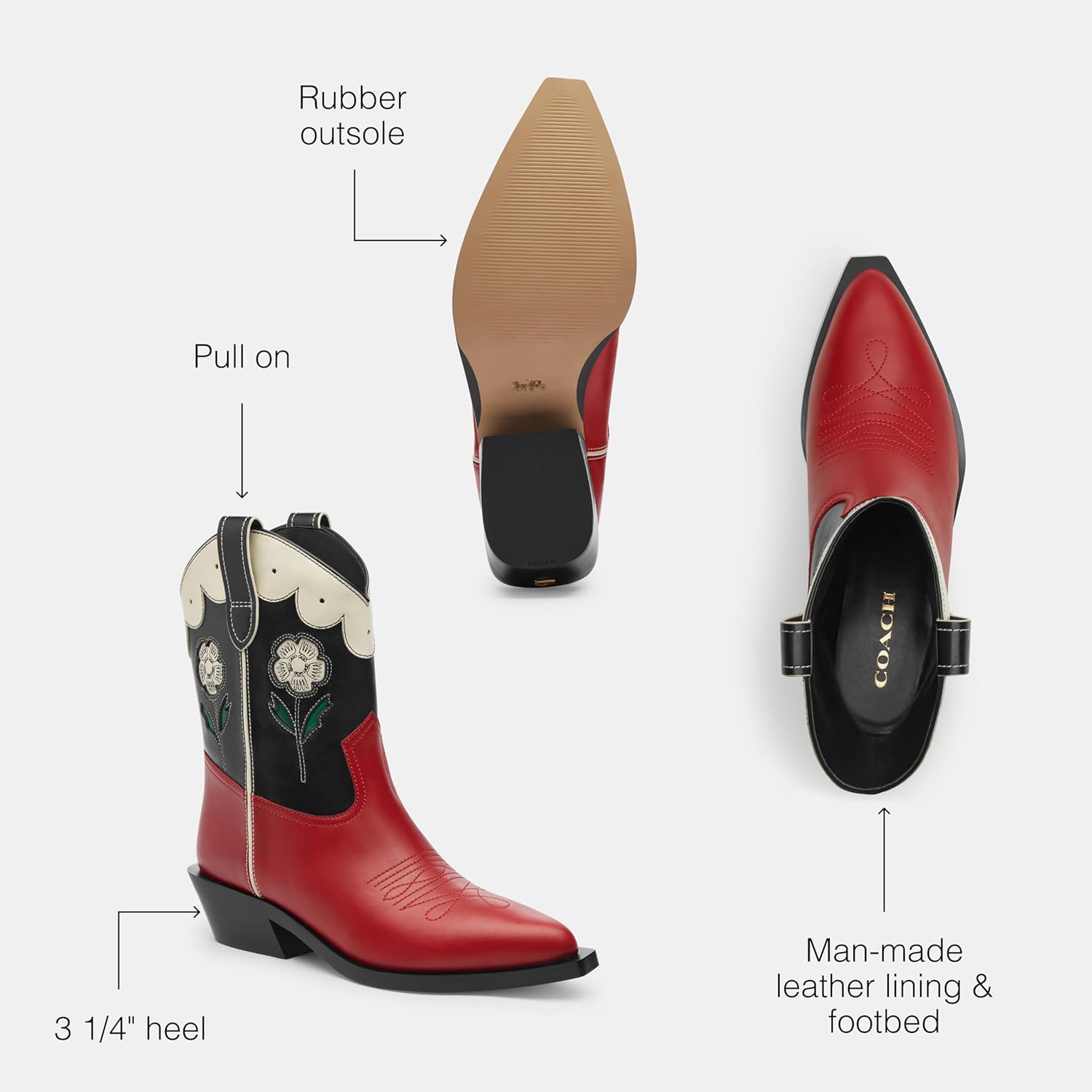 COACH Мужские ботинки Aria Cowboy Boot Industrial, Black/Red