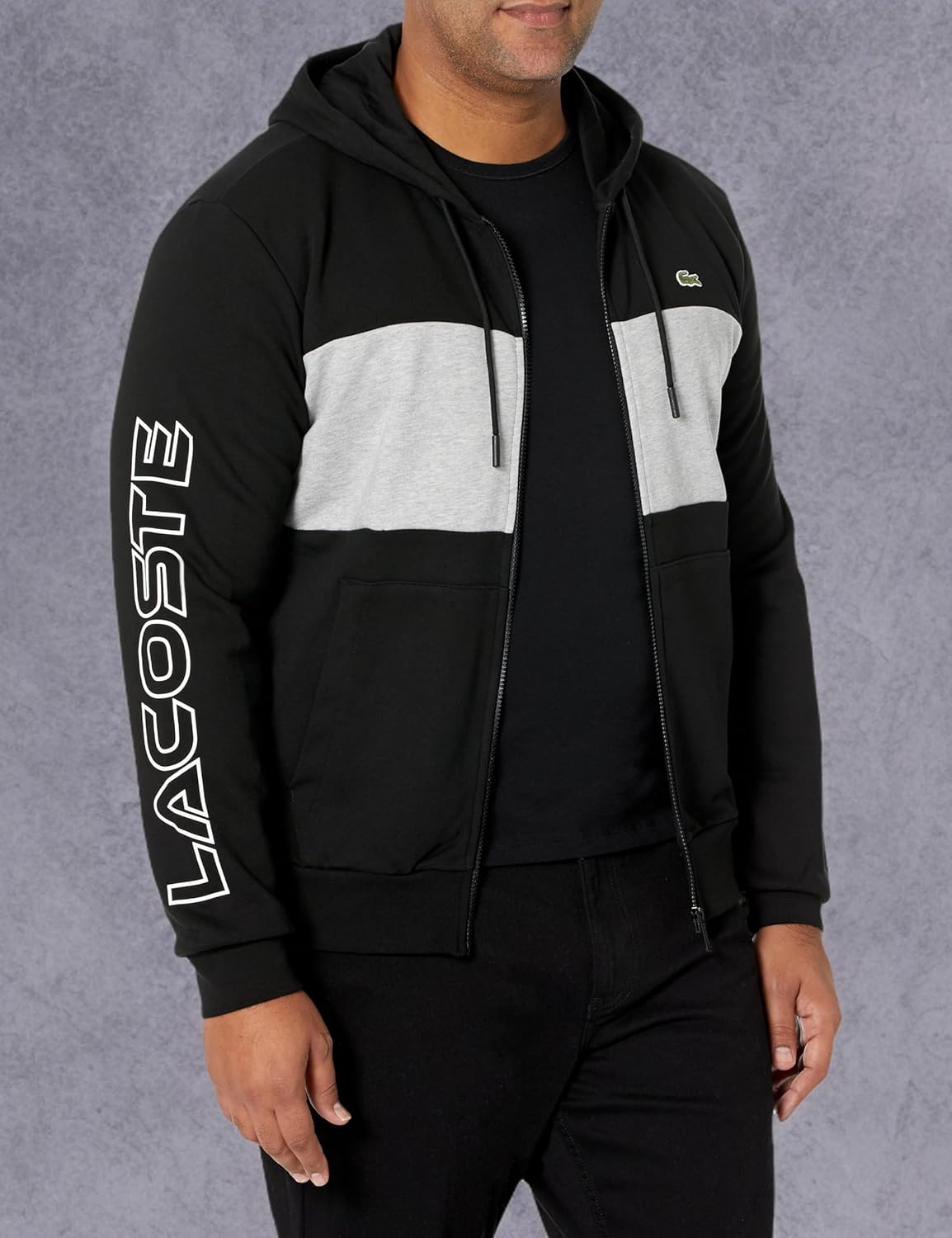 Толстовка Lacoste мужская с капюшоном на молнии, Black/Silver Chine