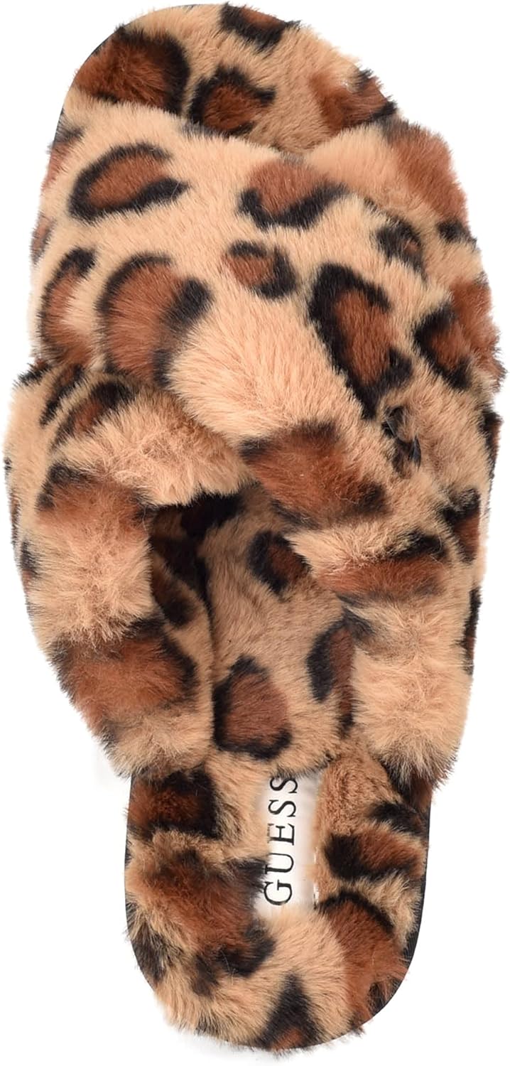 GUESS Crisscross Fur Slipper, Brown Multi Fabric