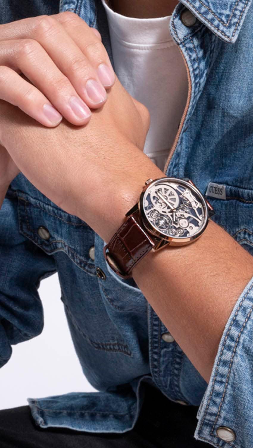 GUESS мужские часы 42mm, Brown/Coffee/Skelaton