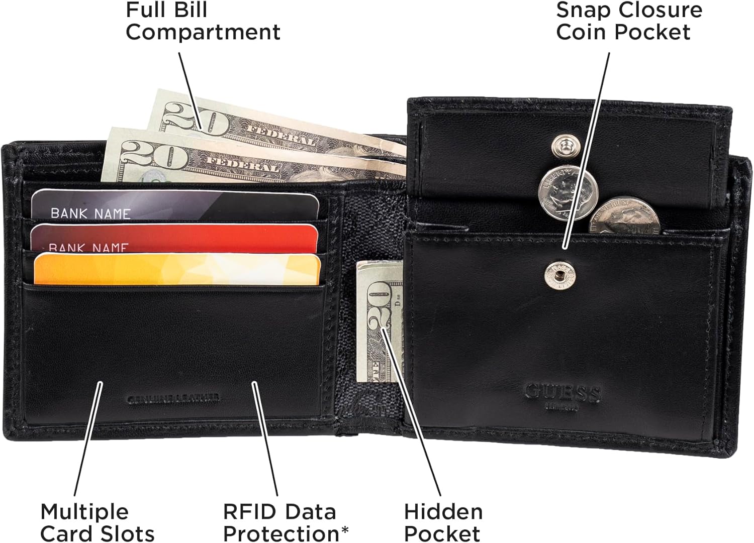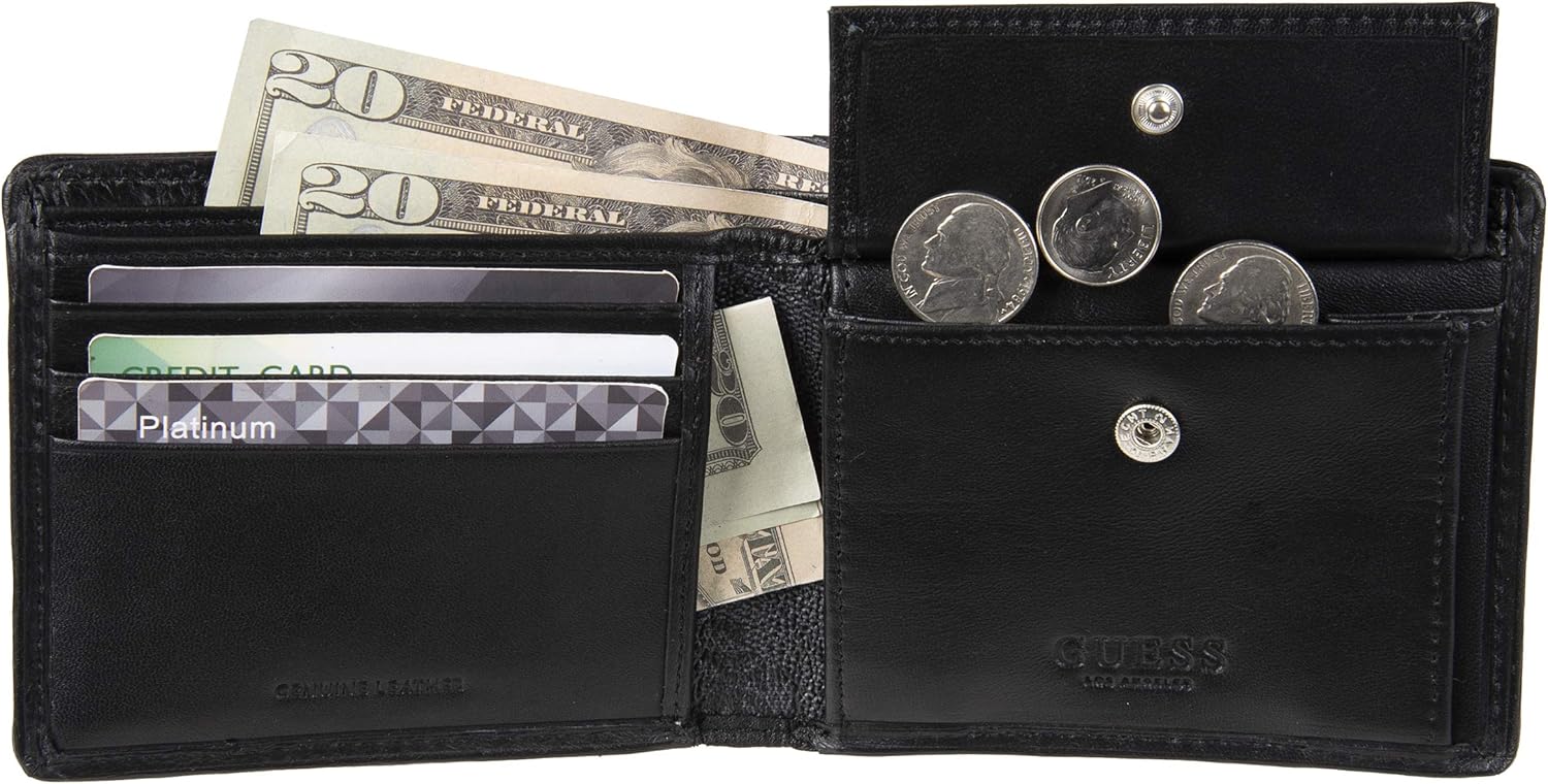 Мужской кожаный тонкий кошелек Guess, Charcoal/Black