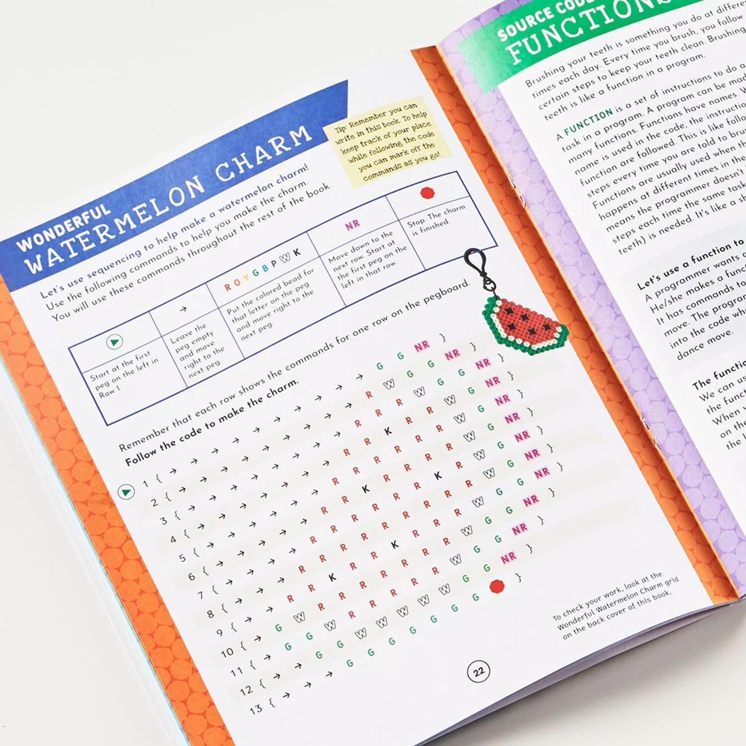 БРЕЛКИ С БИНАРНЫМ КОДОМ: Дети могут выбрать один из 18 дизайнов и закодировать 15 брелков с помощью бусин-предохранителей. Они знакомятся с продвинутыми предметами программирования, развлекаясь и изготавливая 10 очаровательных брелков-брелоков.