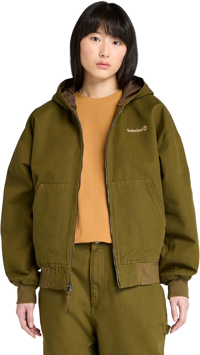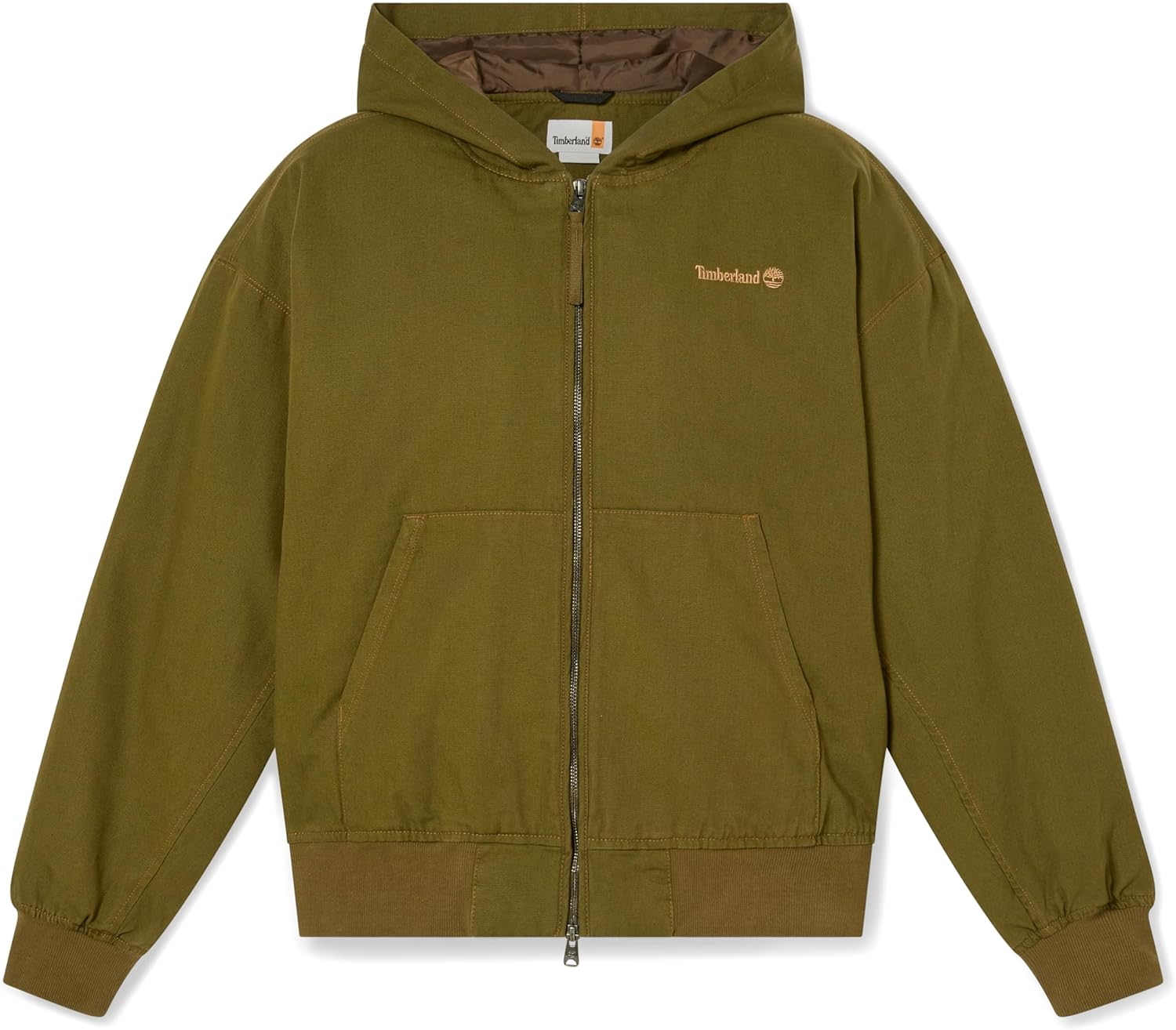 Timberland мужская куртка-бомбер с капюшоном из потертого дака, Dark Olive