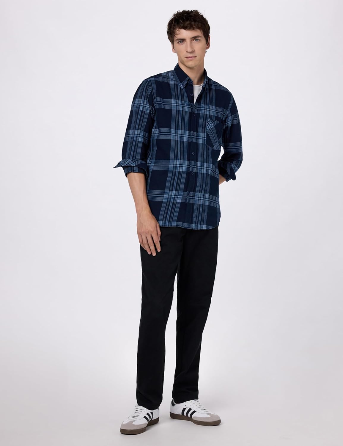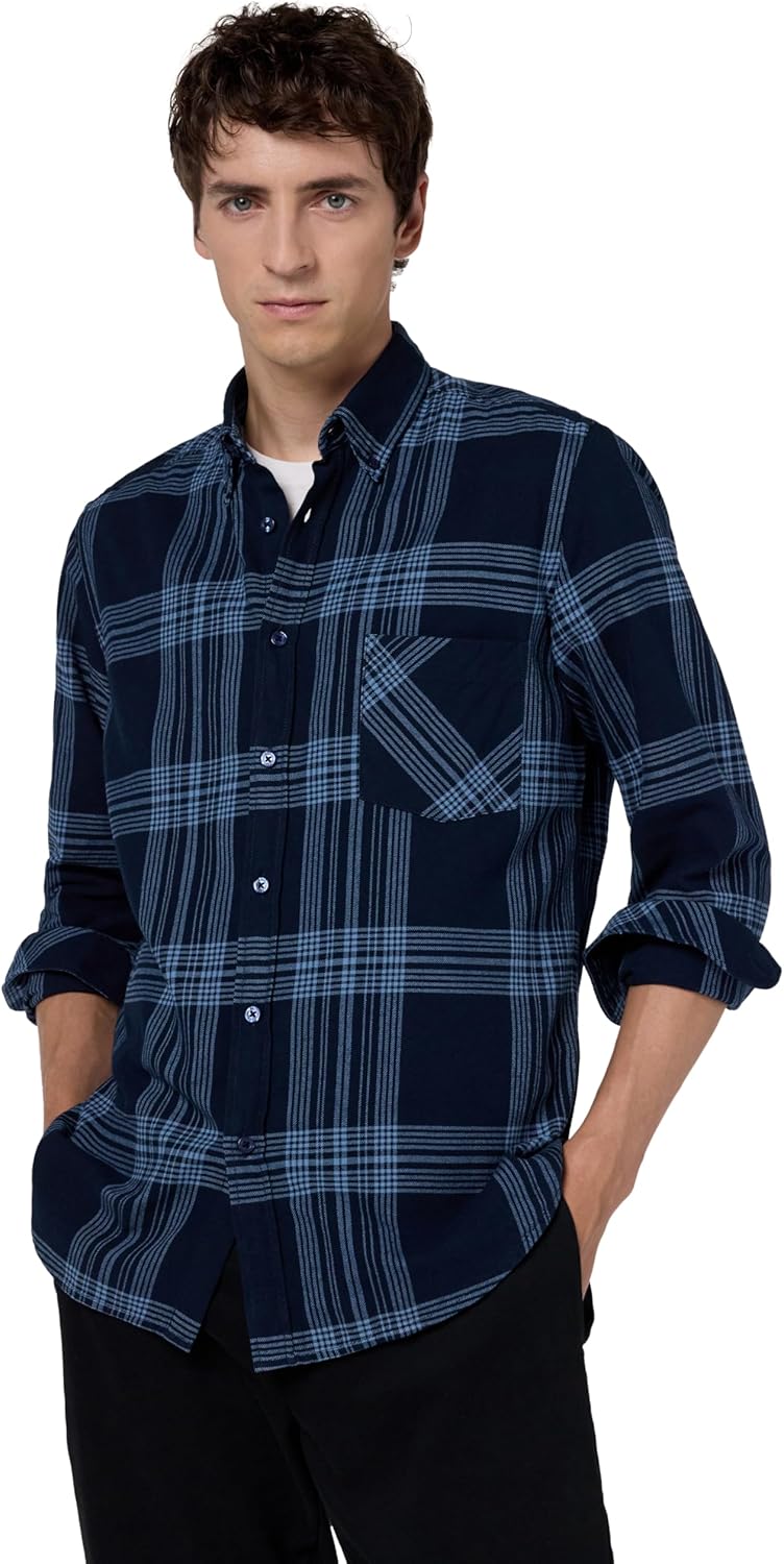 BOSS Мужская рубашка Rickert с длинным рукавом Oxford, Dark Sky Plaid