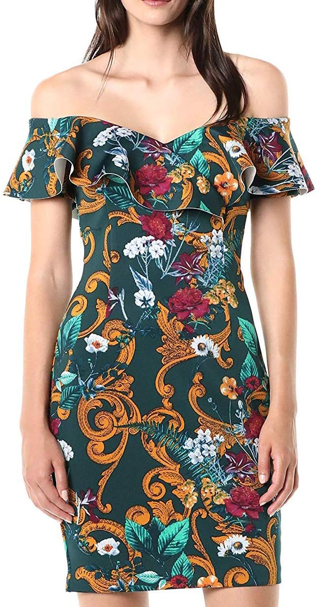 Платье Guess Off The Shoulder Shaye, Gilded Garden Peacock Teal