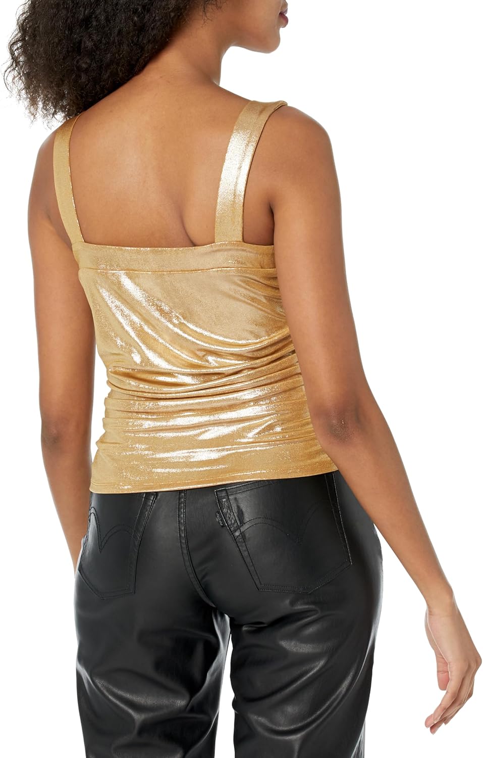 GUESS Женский топ без рукавов Karli с капюшоном, Gold Multi