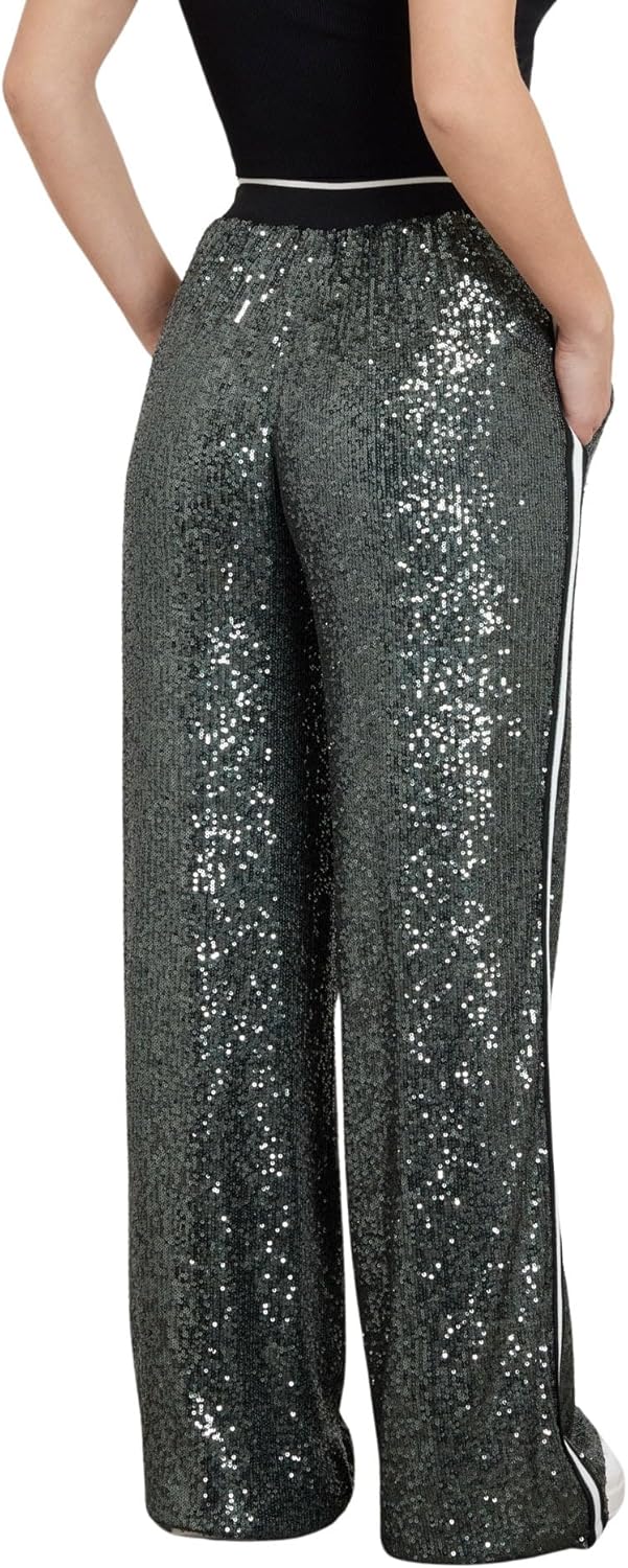 GUESS Женские мини-блестки прямые длинные брюки, Greenery