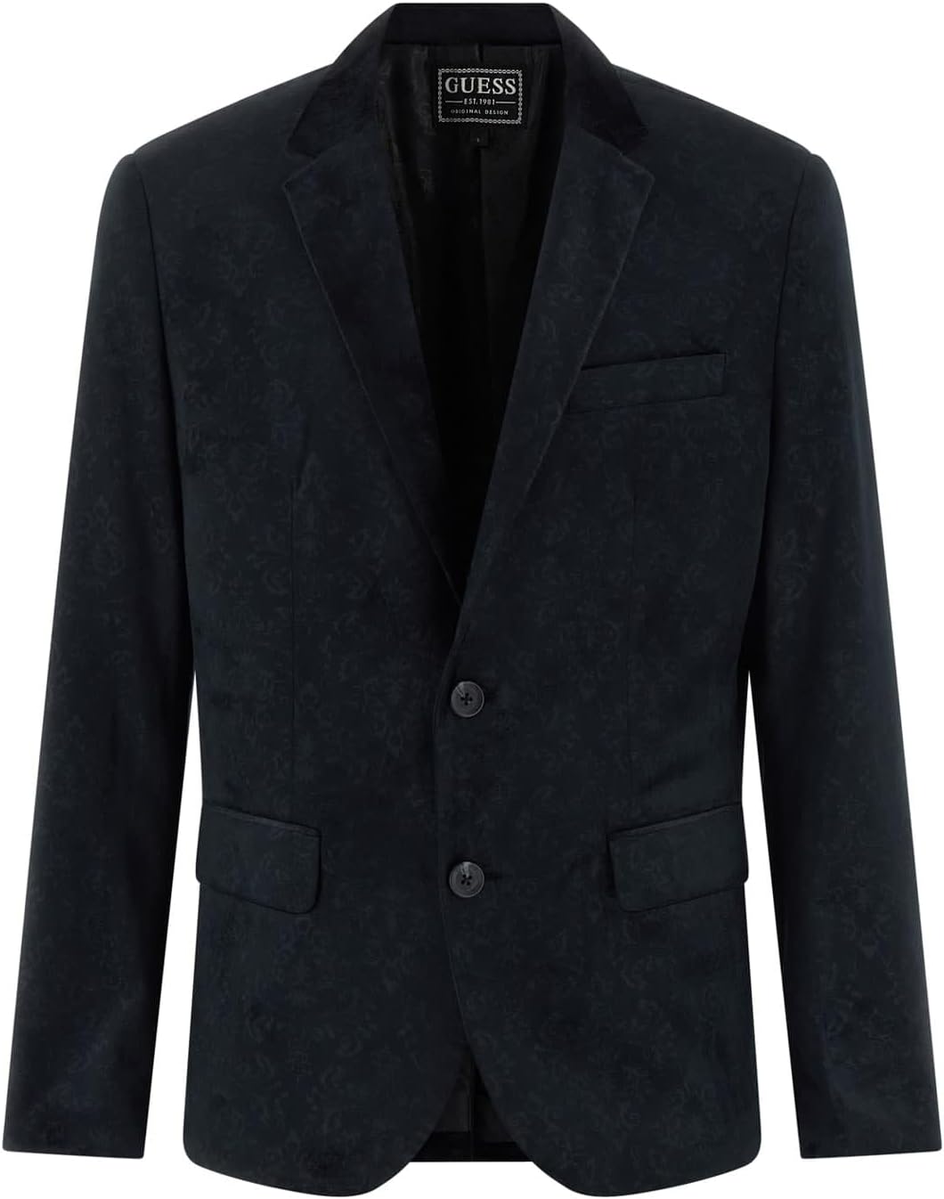 Guess Mens Eco Fulham Embossed Velvet Blazer, Jet Black