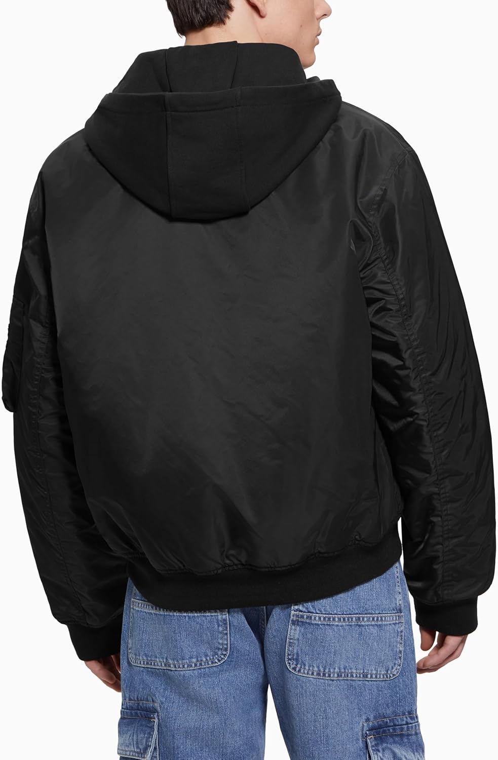 GUESS мужская ветровка John Bomber с капюшоном, Jet Black