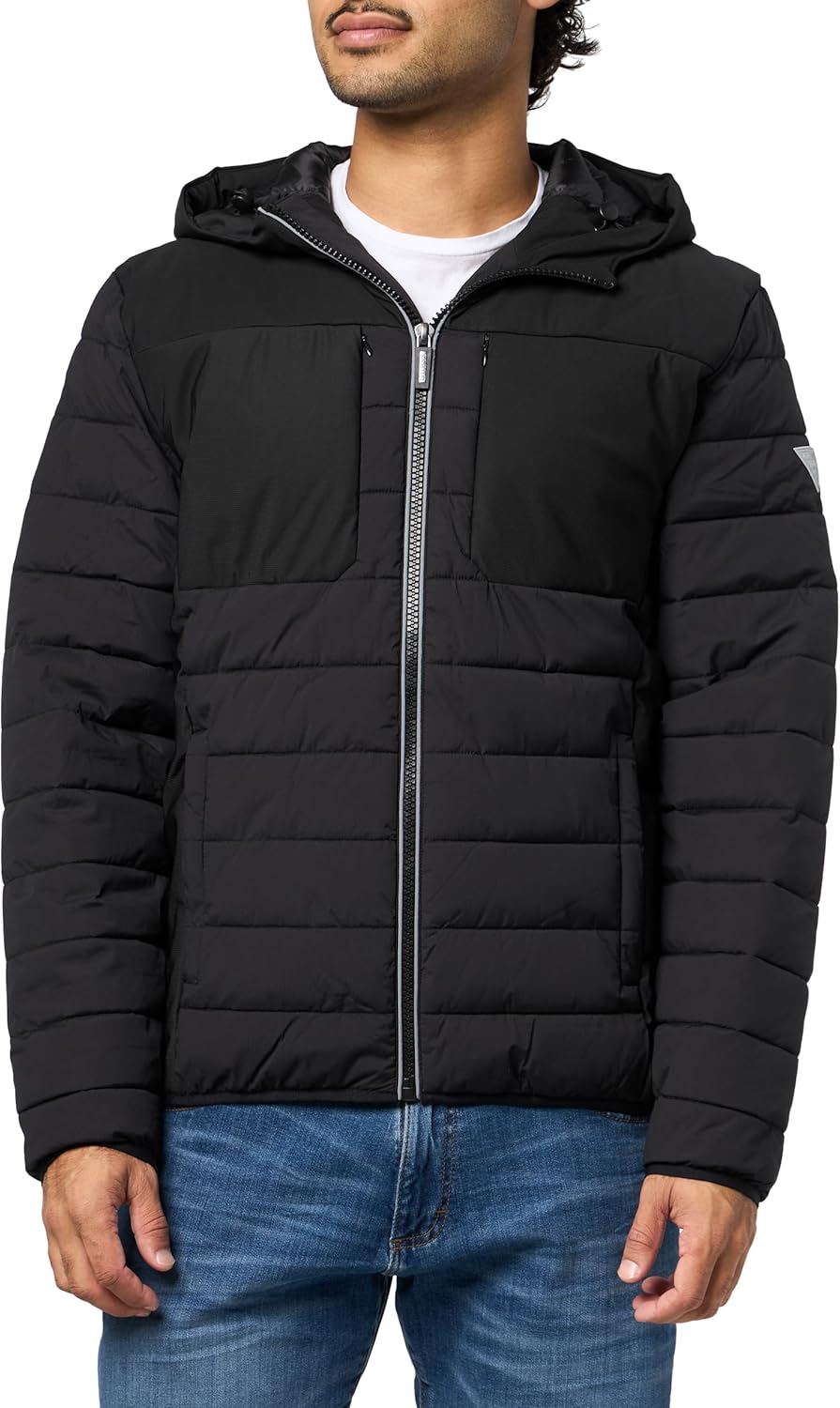 GUESS мужская куртка Juha с капюшоном, гибридная софтшелл, Jet Black