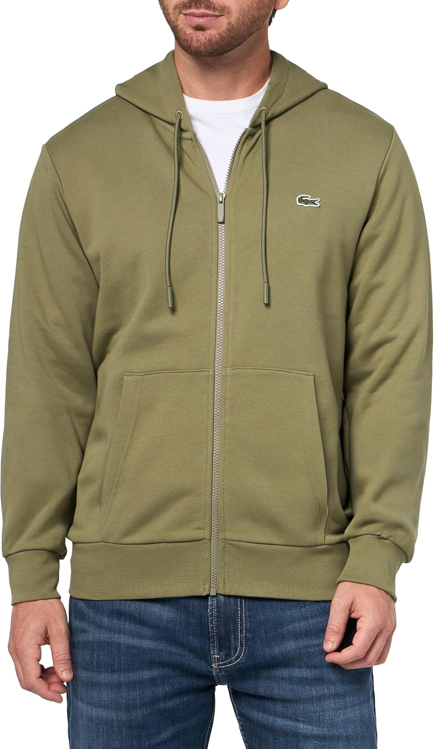 Lacoste мужская худи на молнии из неворсового флиса, Khaki