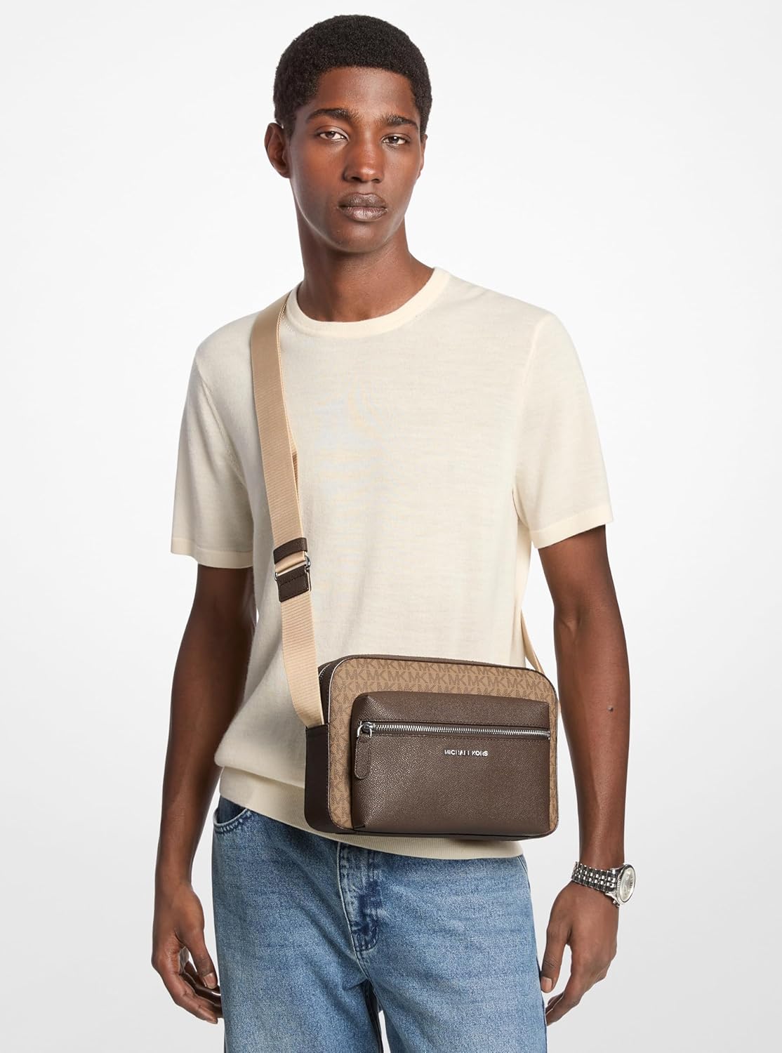 Сумка Michael Kors Hudson Front Zip Camera Bag, Light Gunmetal Hardware/Husk Signature