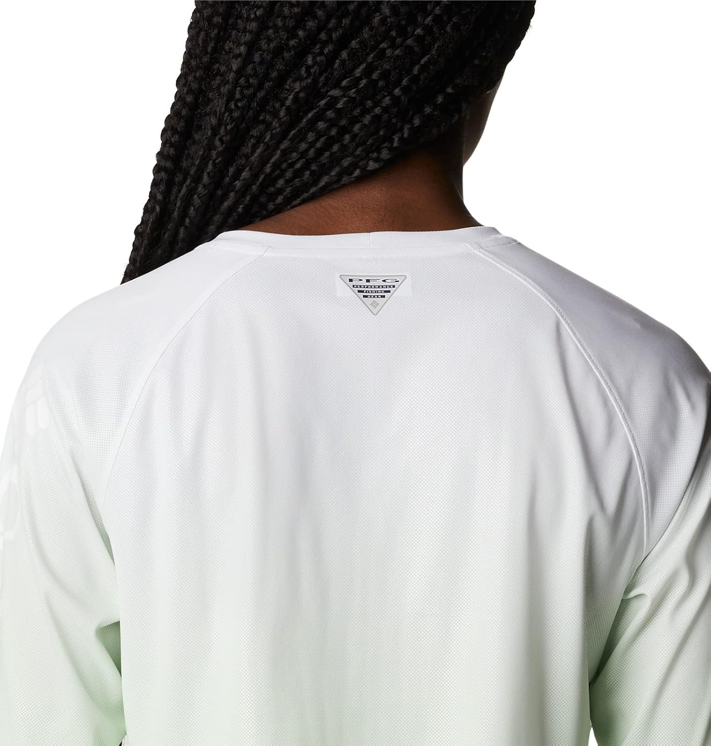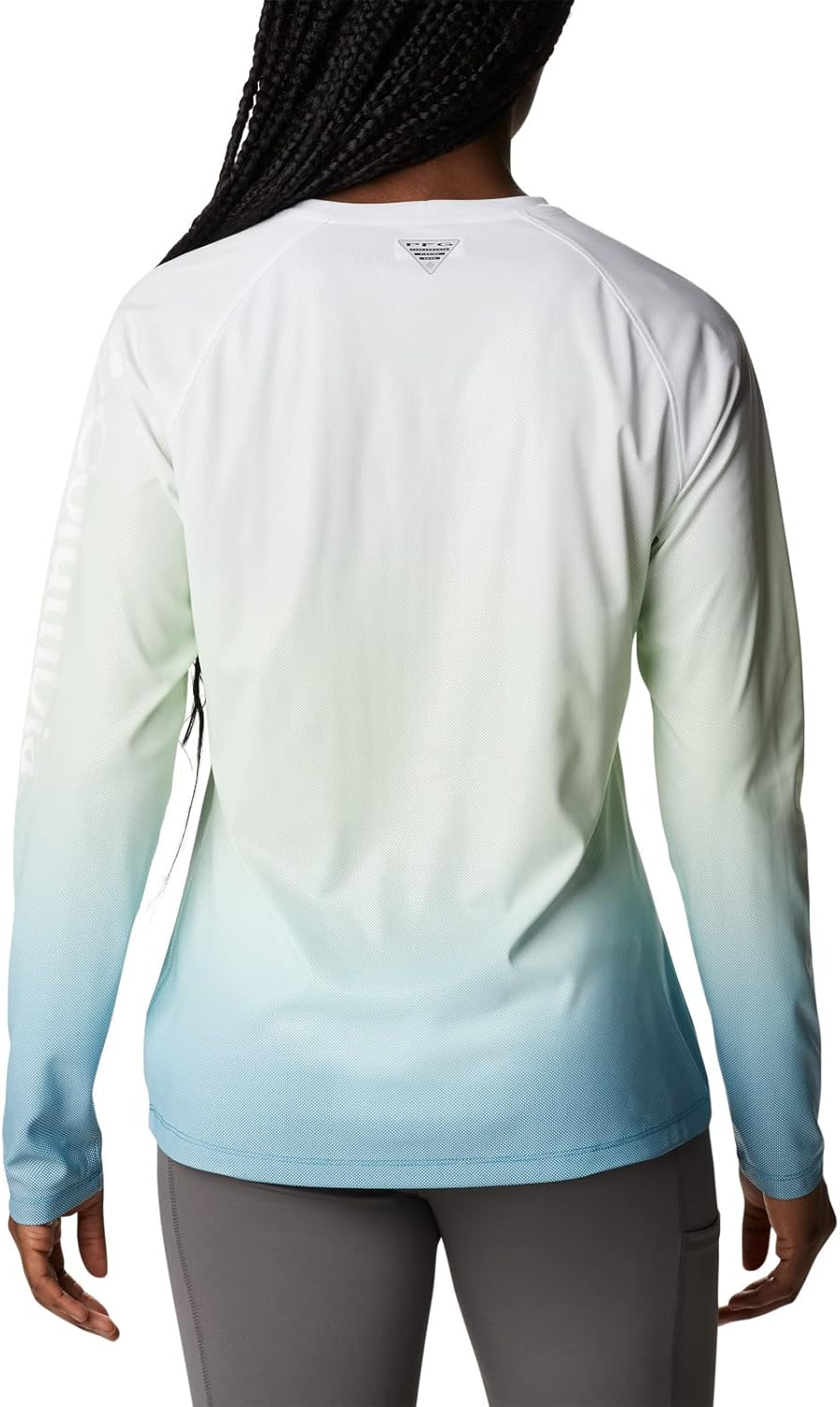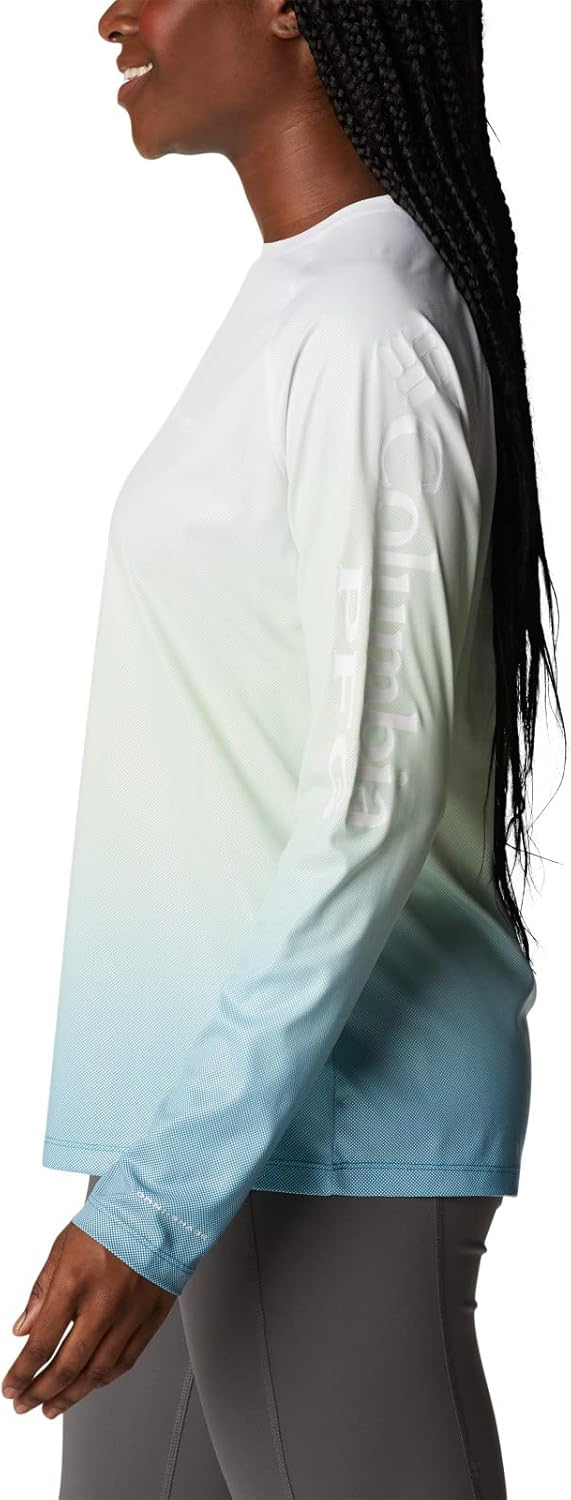 Футболка Columbia Womens Printed Tidal Deflector Long Sleeve, Light Lime/Deep Marine Gradient