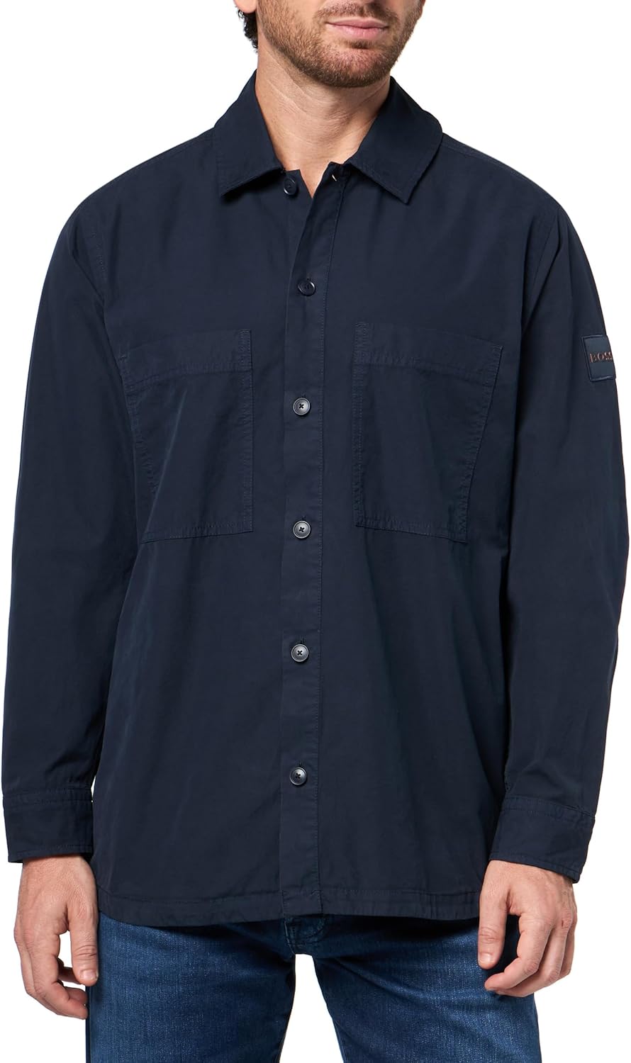 Мужская крашеная саржевая рубашка BOSS, Light Midnight Zone