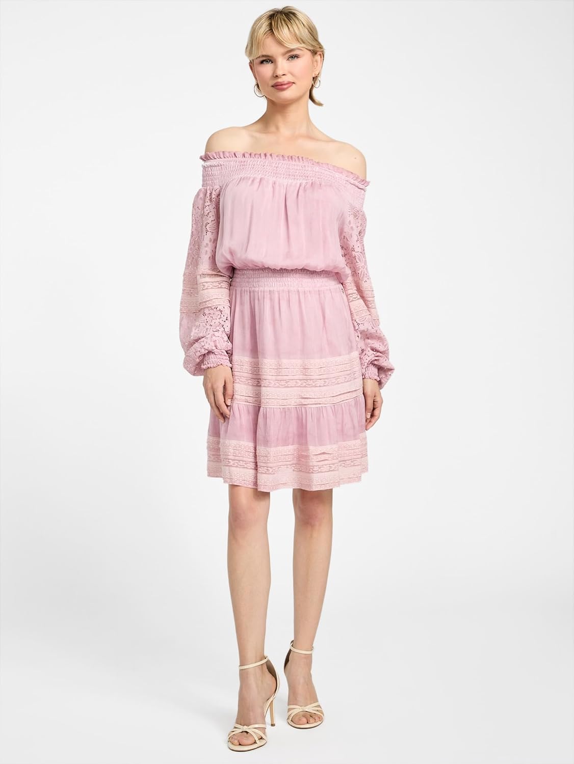 GUESS Женское платье Audrey Off Shoulder Mini, Lilac Cream Multi