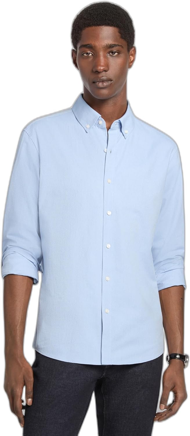Рубашка мужская Michael Kors Long Sleeve Stretch Dobby Slim Fit, Marine Blue