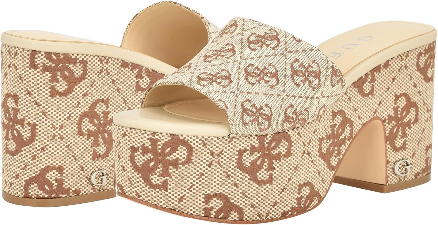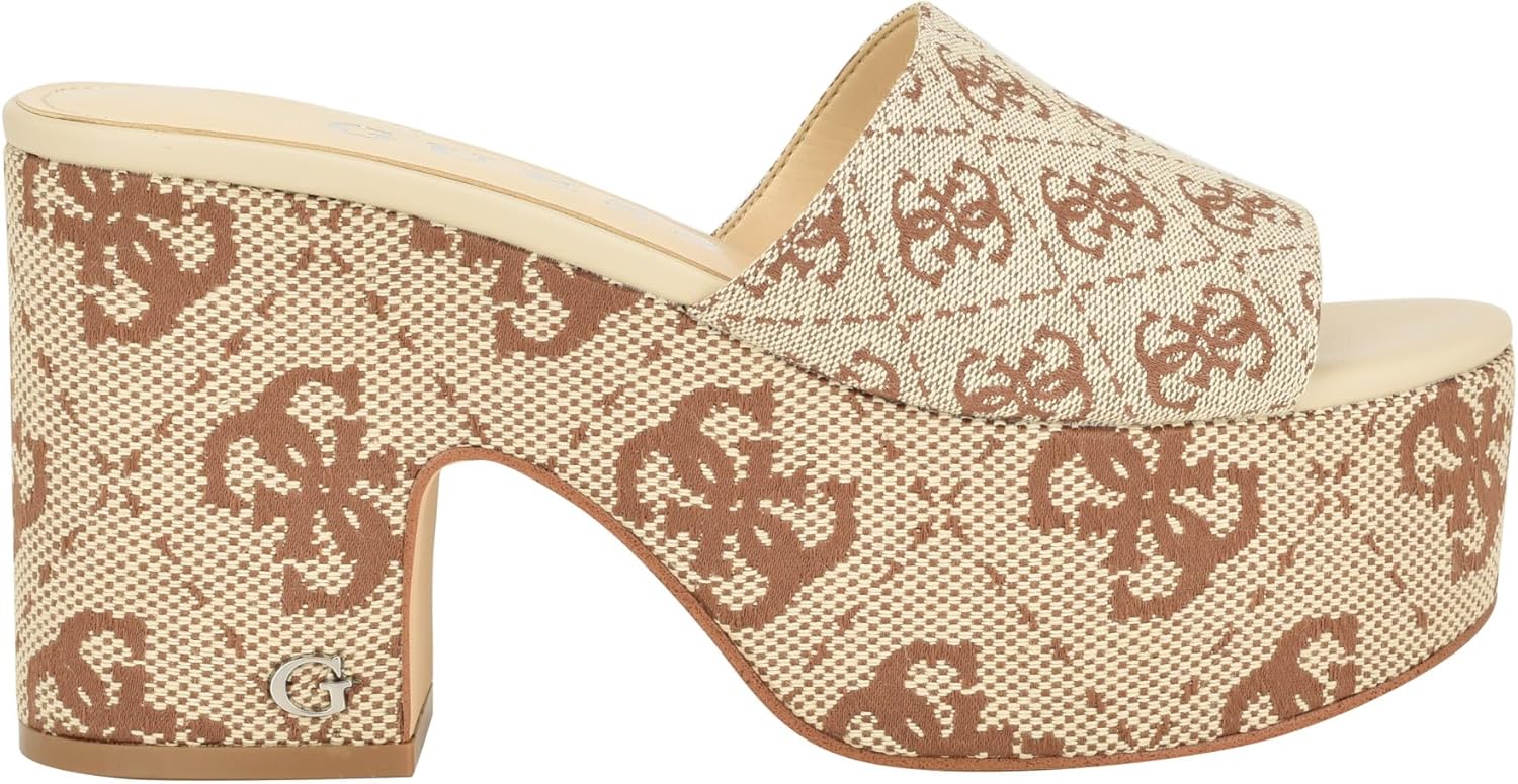 GUESS Women's Yapplea босоножки на каблуке, Medium Brown Logo