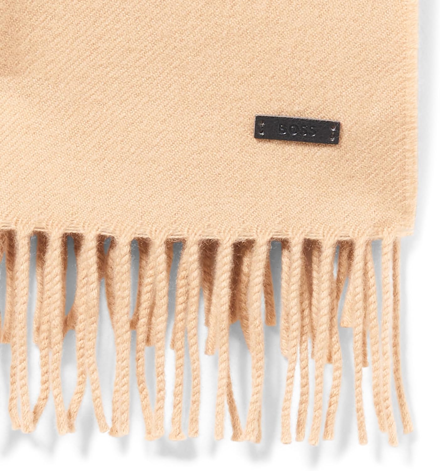 BOSS женский шарф из шерстяной ткани с логотипом, Medium Flax Seed