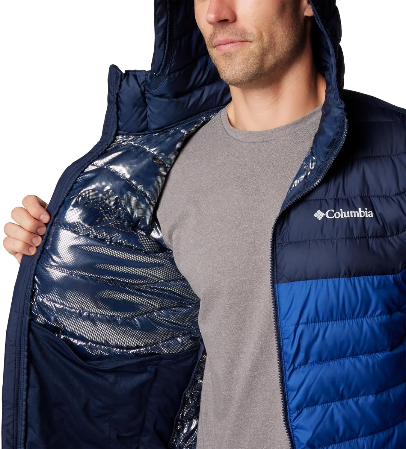 Куртка Columbia Men's Powder Lite II с капюшоном, Mountain Blue/Collegiate Navy