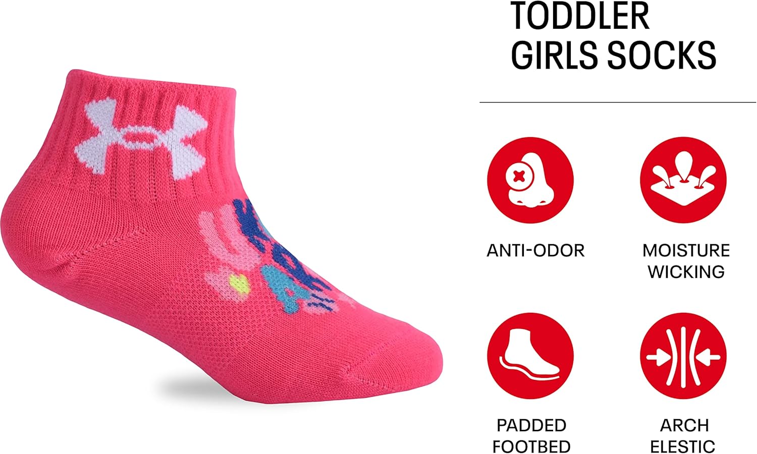 Under Armour детские носки Essential Quarter, набор, Neon Pink