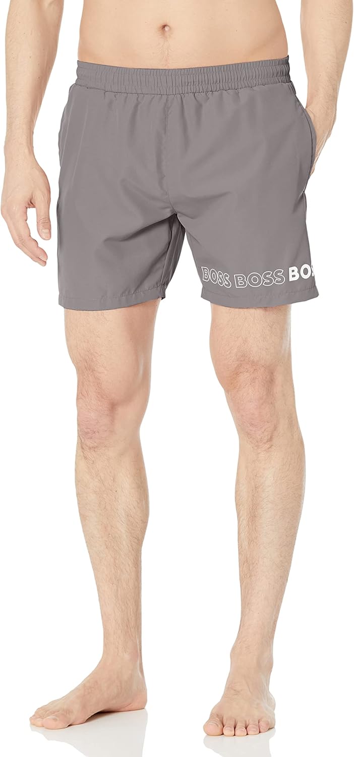 Мужские плавки BOSS с вертикальным логотипом, Nickle Grey