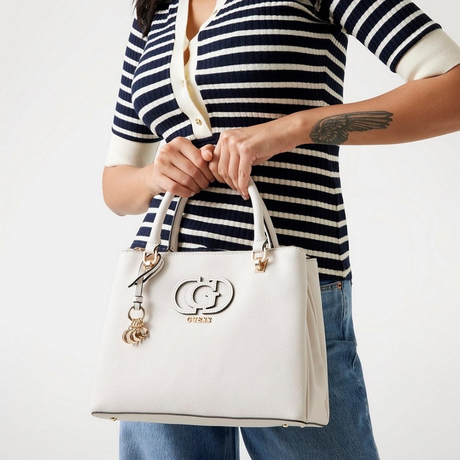 GUESS женская сумка Calebra Status Satchel, Off-White