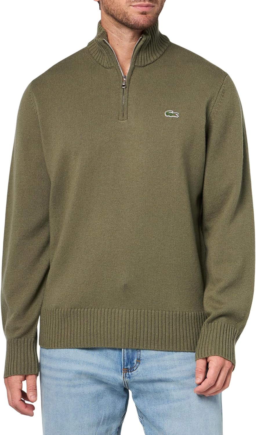 Свитер Lacoste мужской с высоким воротником на молнии, шерсть, Olive