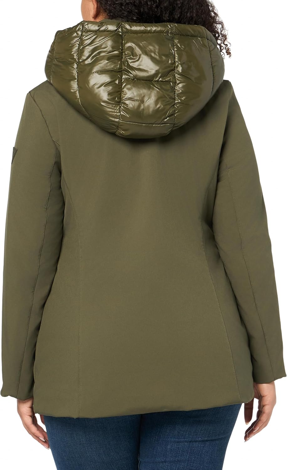 GUESS женская куртка Midlength Softshell с капюшоном, Olive Morning Multi