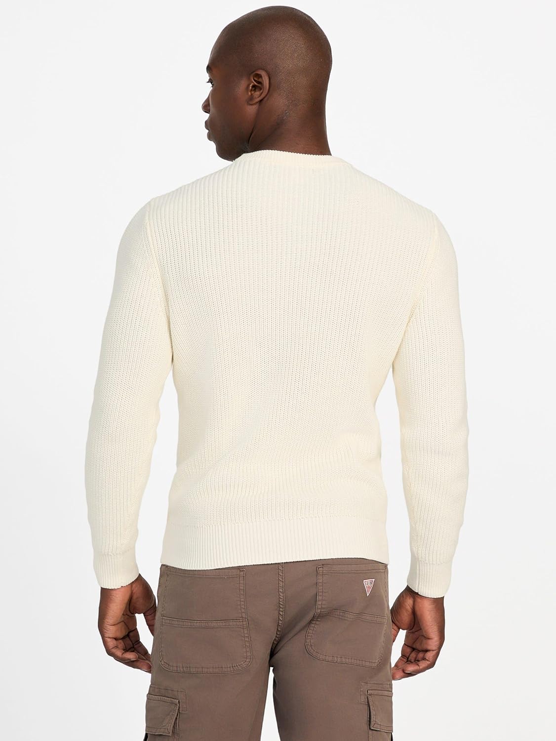 Свитер GUESS Herbie в рубчик с эффектом потертости, Pearl White