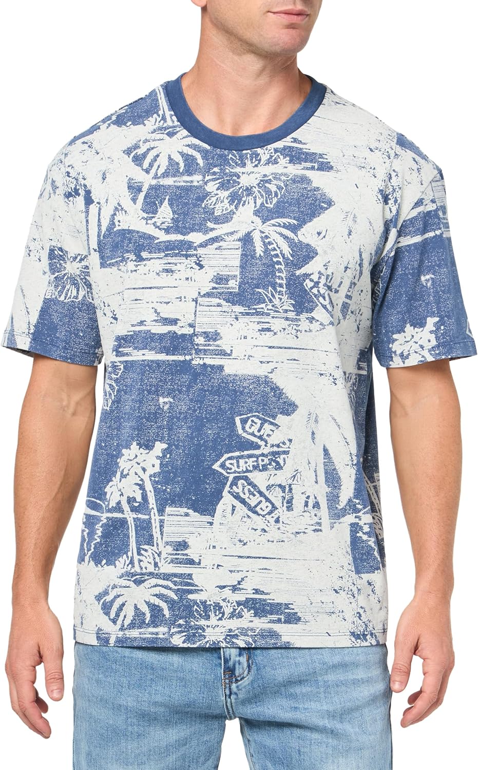 GUESS Мужская футболка Eco Basic Island Life, Pennant Blue Multi
