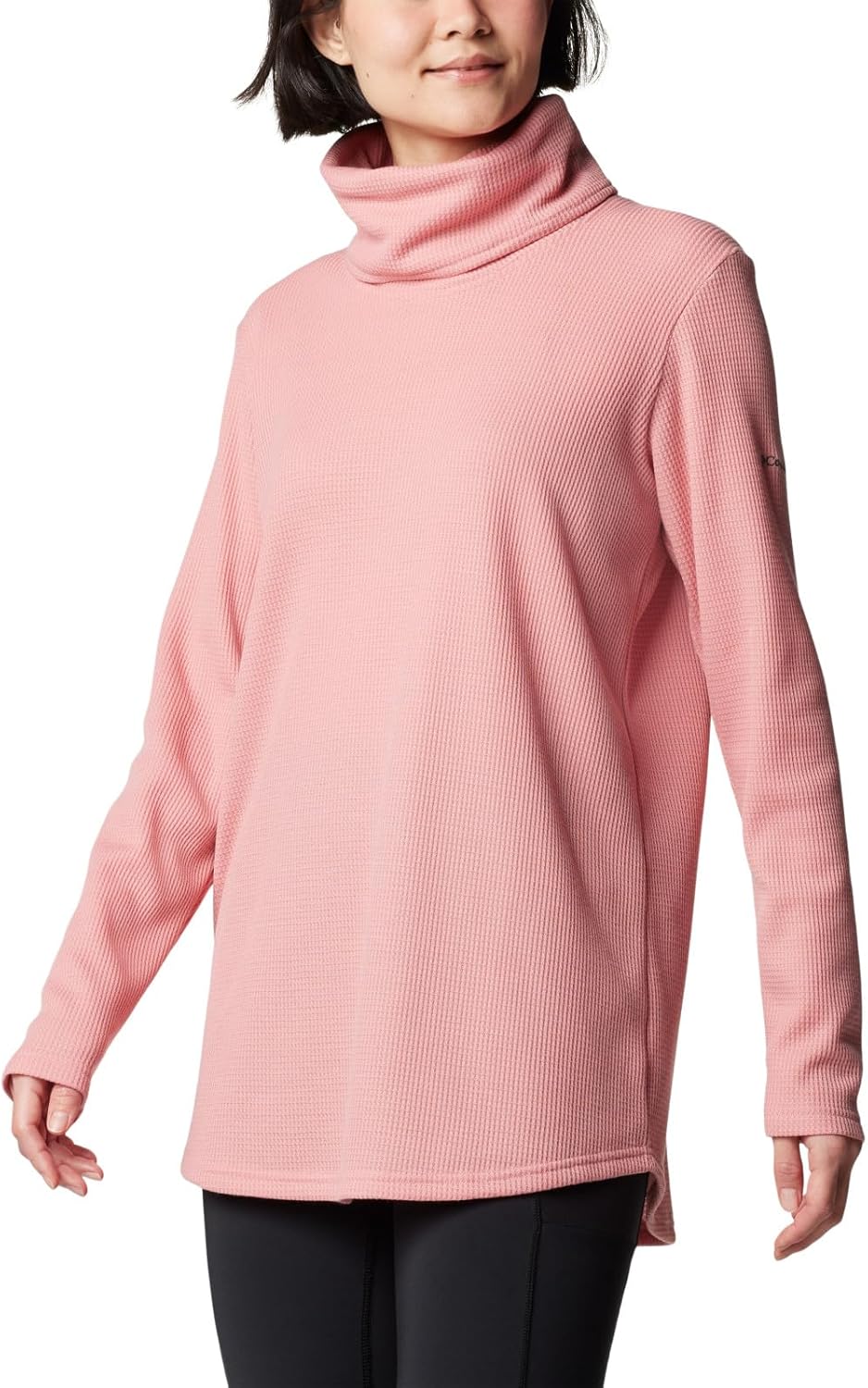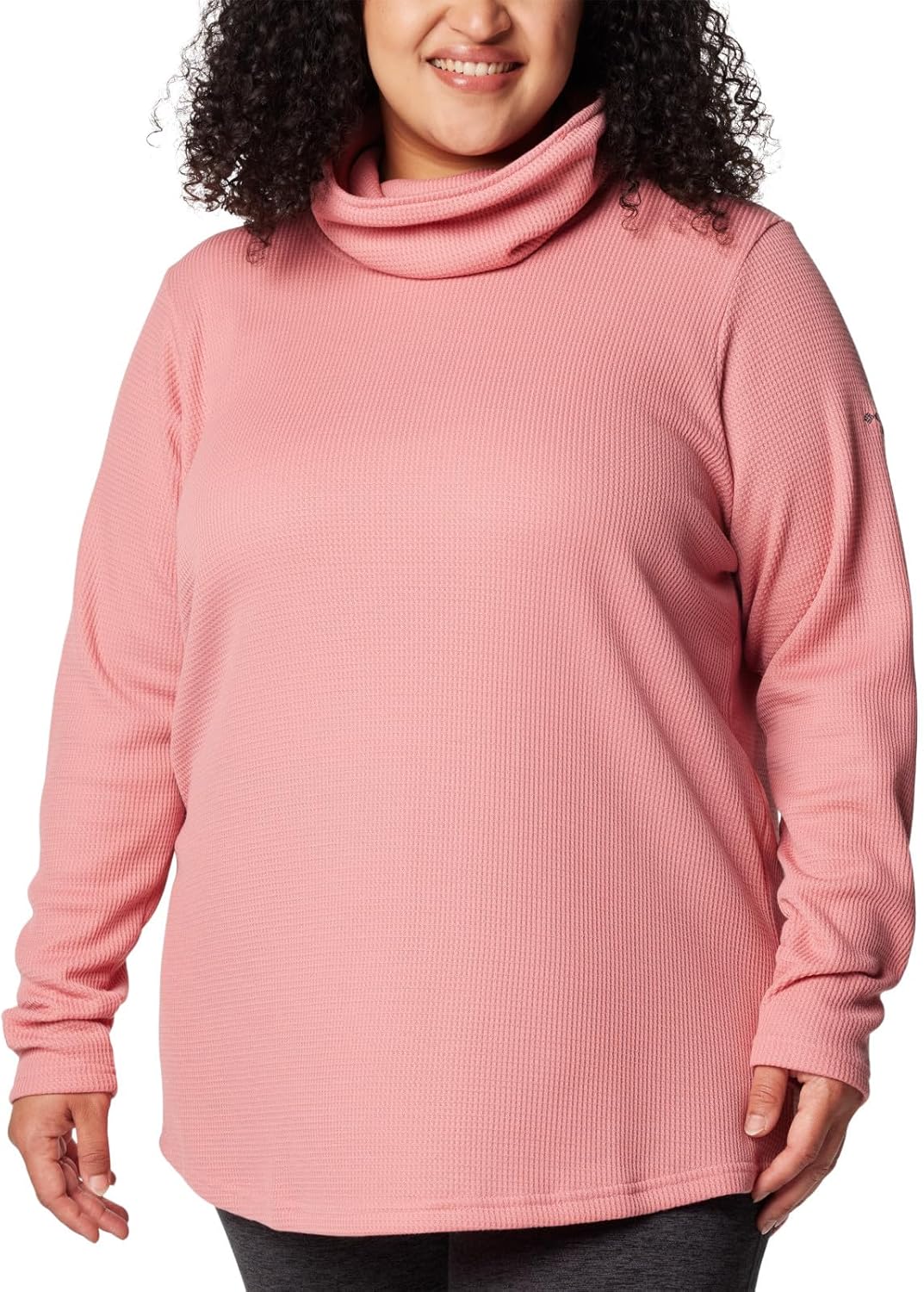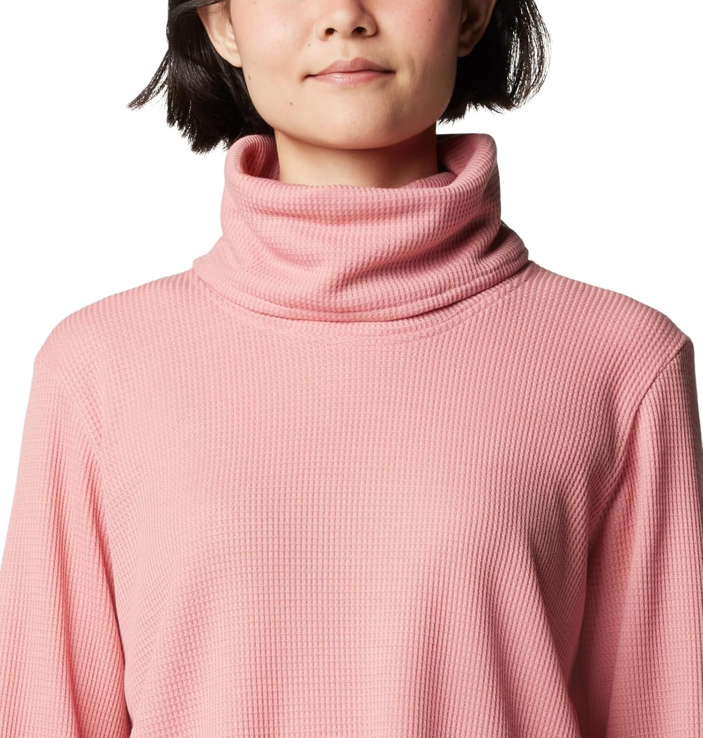 Columbia Womens Holly Hideaway Waffle Cowl Neck Pullover, Pink Agave