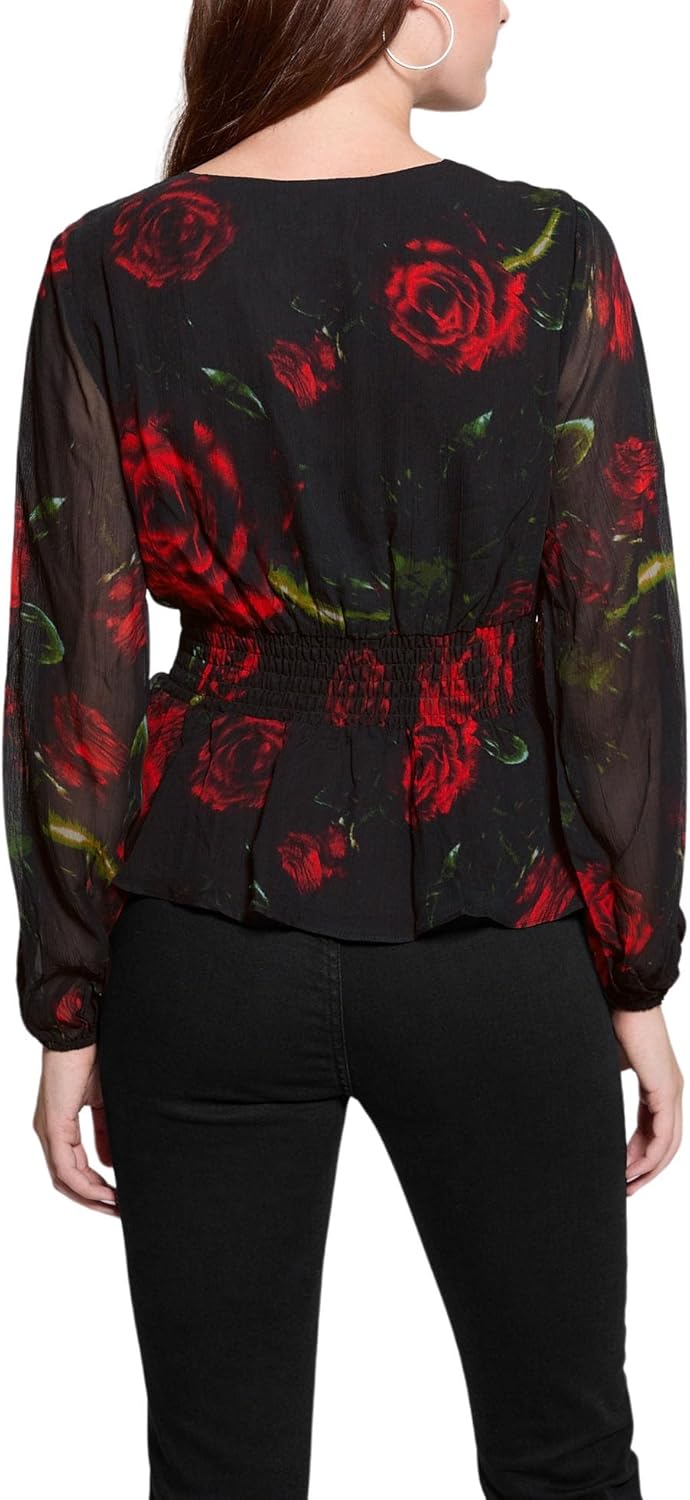 GUESS Women's Long Sleeve Nicole Poplin Top, Pure White